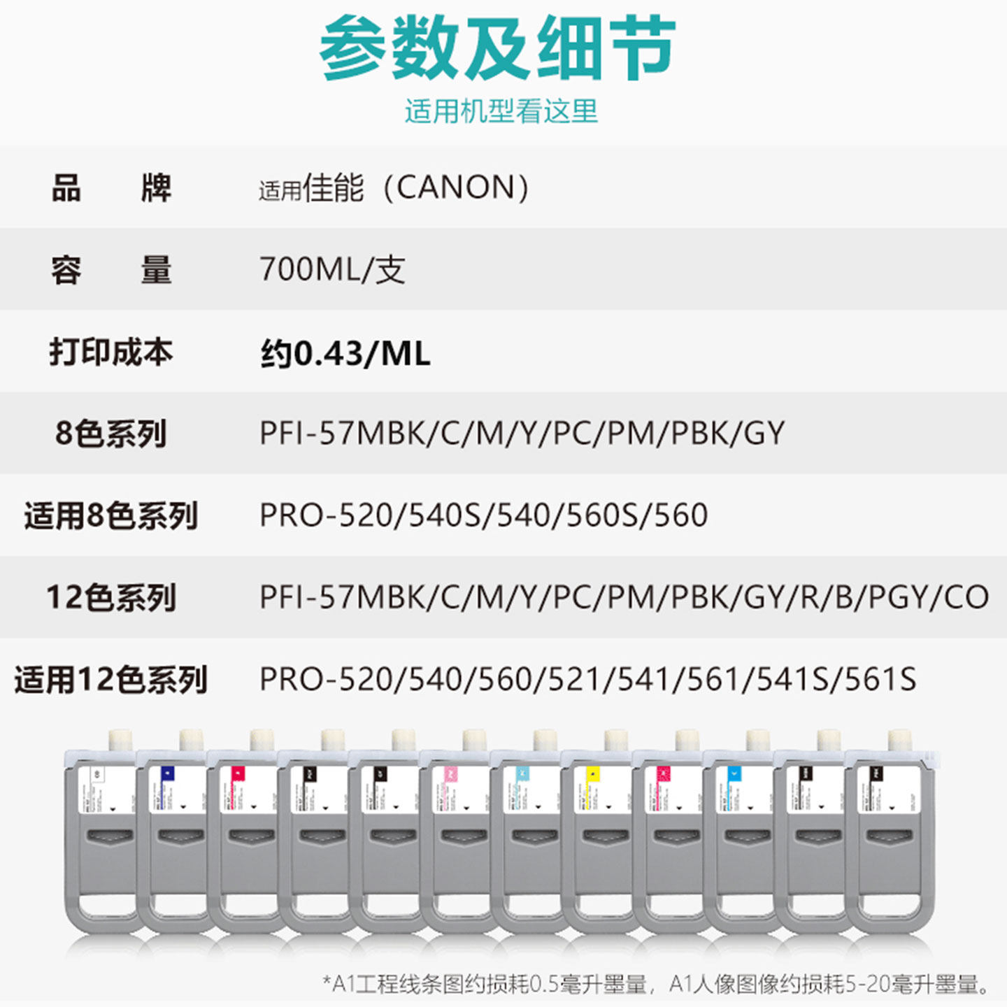 适用PRO520打印机墨盒540/560/521/561/541S/561佳能PFI-57墨水盒