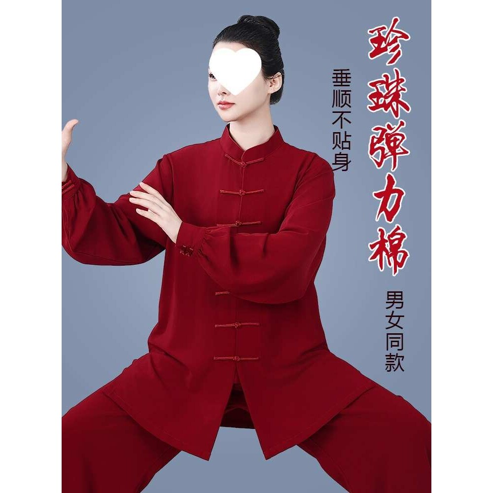 名道新款太极服男女改良武术练功服春秋珍珠棉八段锦演出队服
