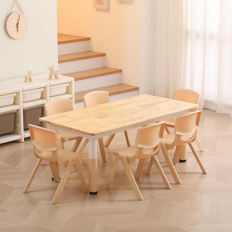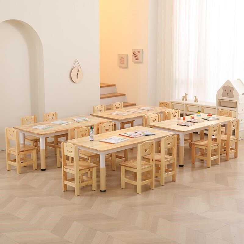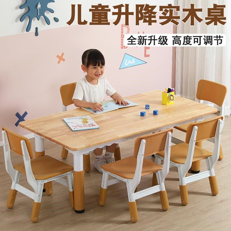 幼儿园实木桌椅可升降橡木桌椅套装加厚学习桌子宝宝吃饭桌玩具桌