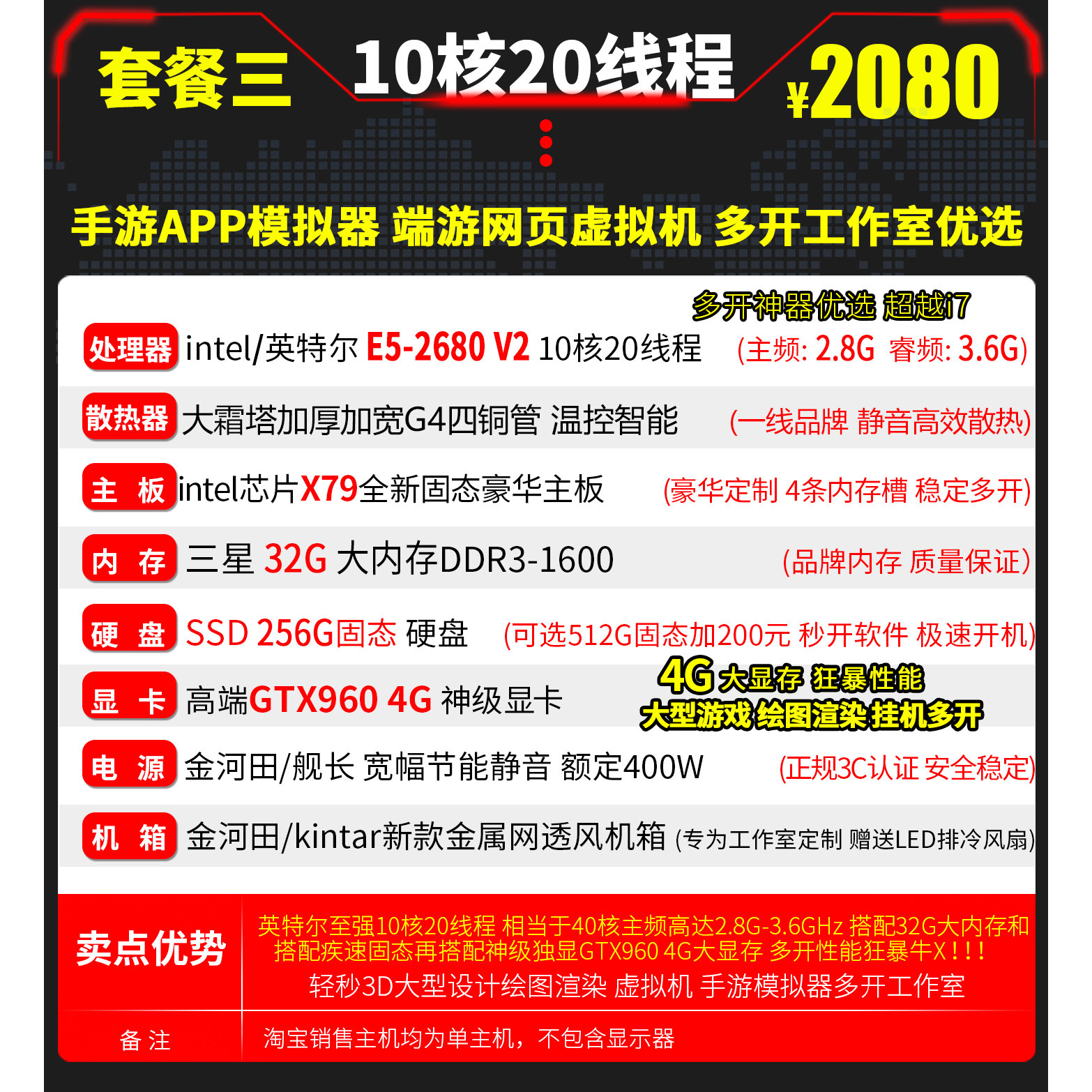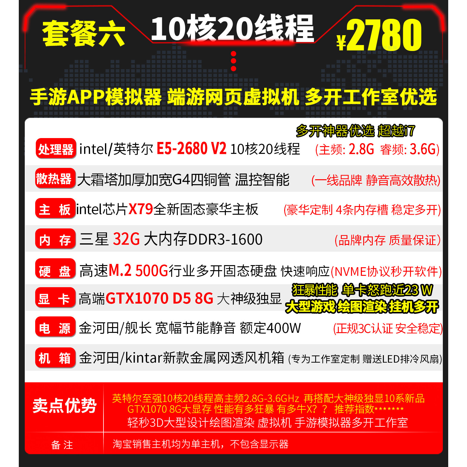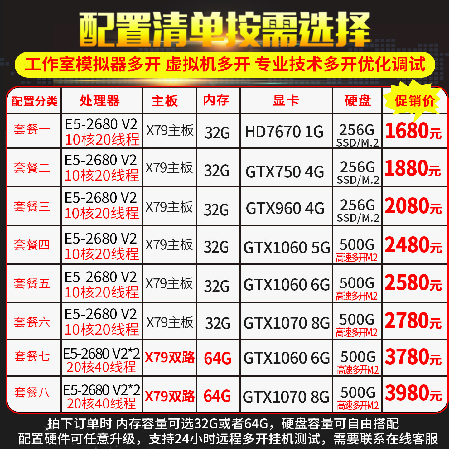 至强E5-2680V2十核家用办公游戏多开工作室电脑主机组装机服务器