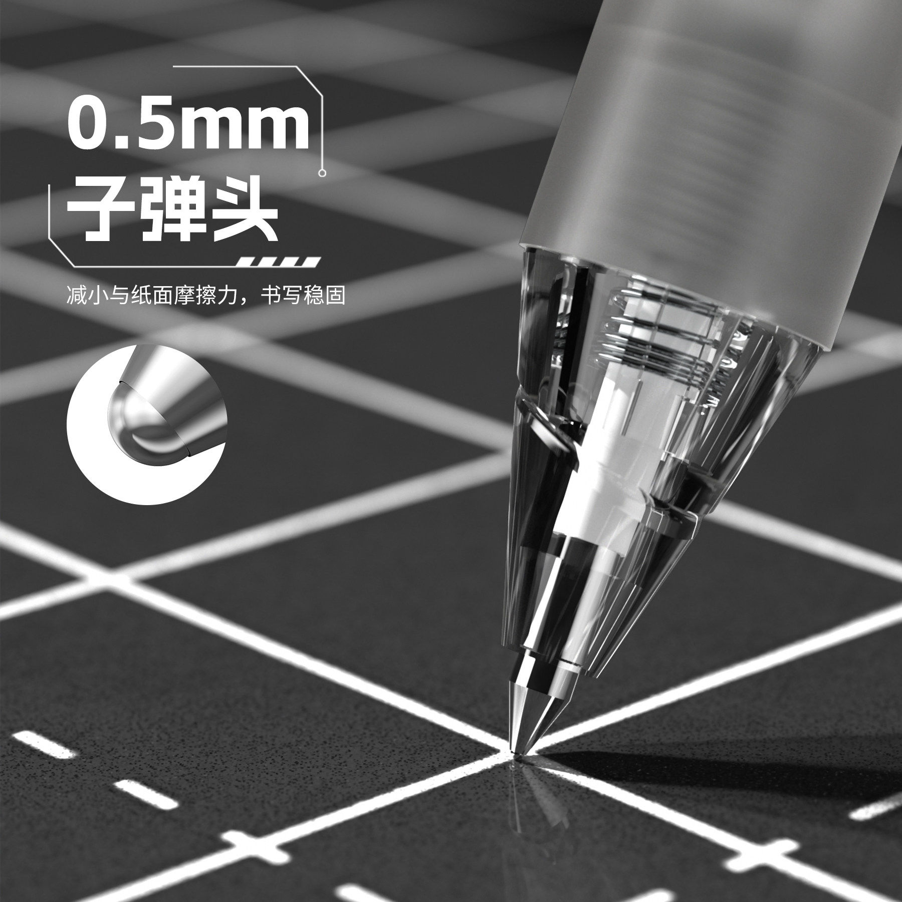 得力刷题笔速干st头透明考试笔考研考公学生用文具黑色0.5刷题备考专用笔中高考高颜中性笔碳素考按动式透明