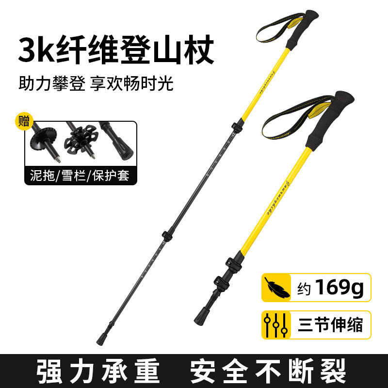 哲客户外碳素登山杖伸缩款手仗徒步爬山登山雪山3K碳纤轻硬不变形