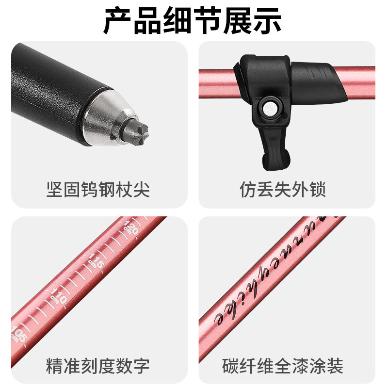 登山杖手杖折叠专业户外爬山拐杖装备徒步滑雪杖拐棍碳素超轻伸缩