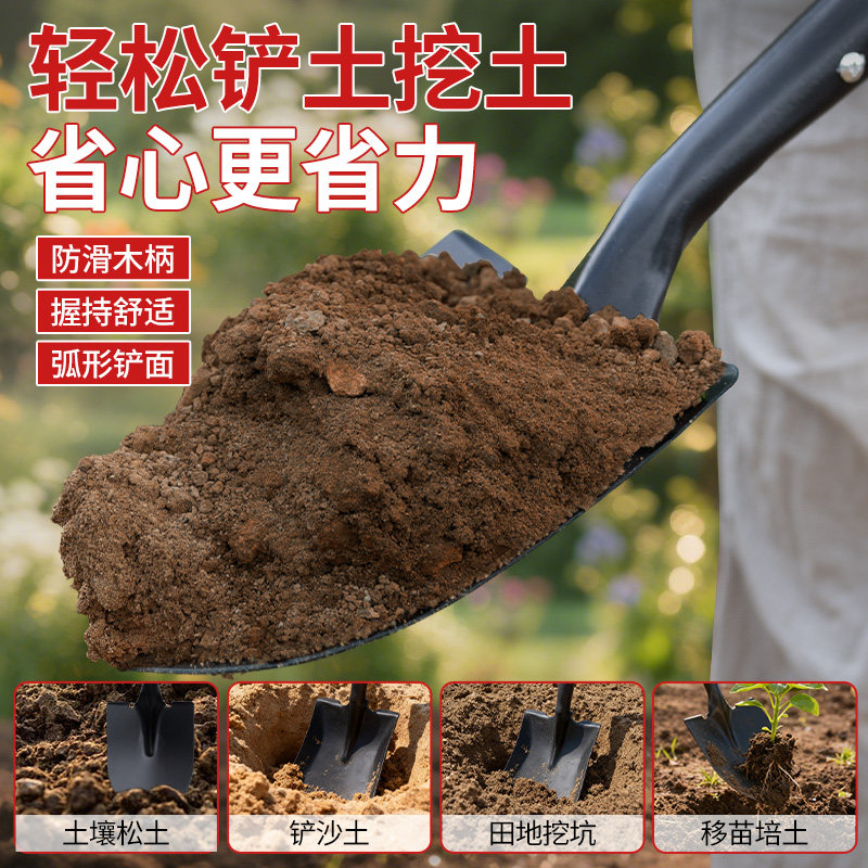 铁锹铲子铁铲农用加厚锰钢家用种菜种花工具园艺户外挖沙木柄挖地