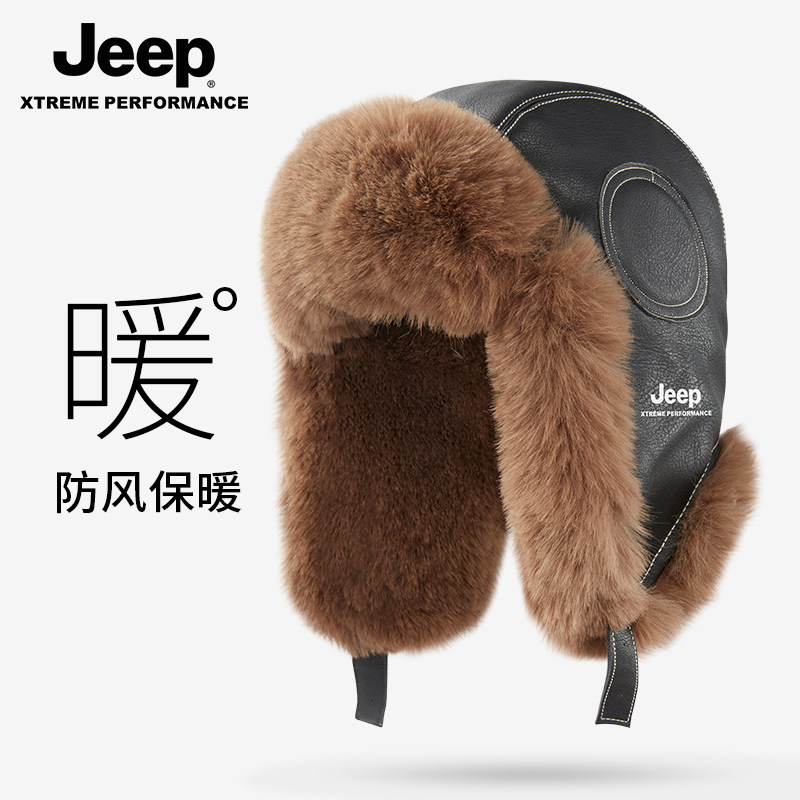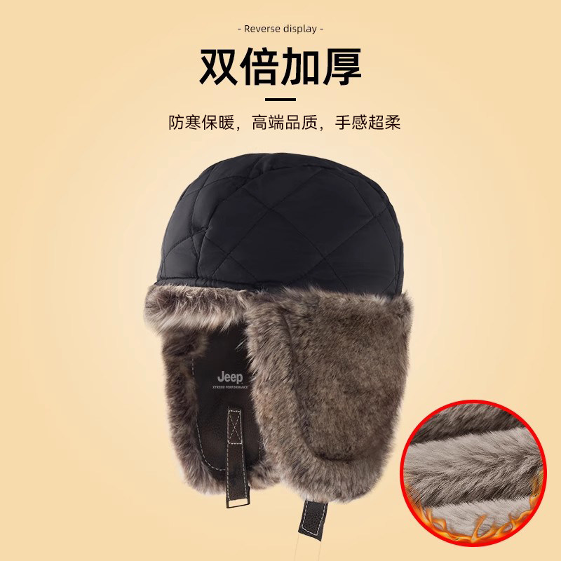 jeep吉普雷锋帽男保暖冬天骑车电动车防风防寒帽东北套头帽子男士