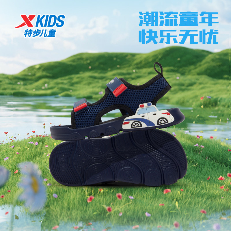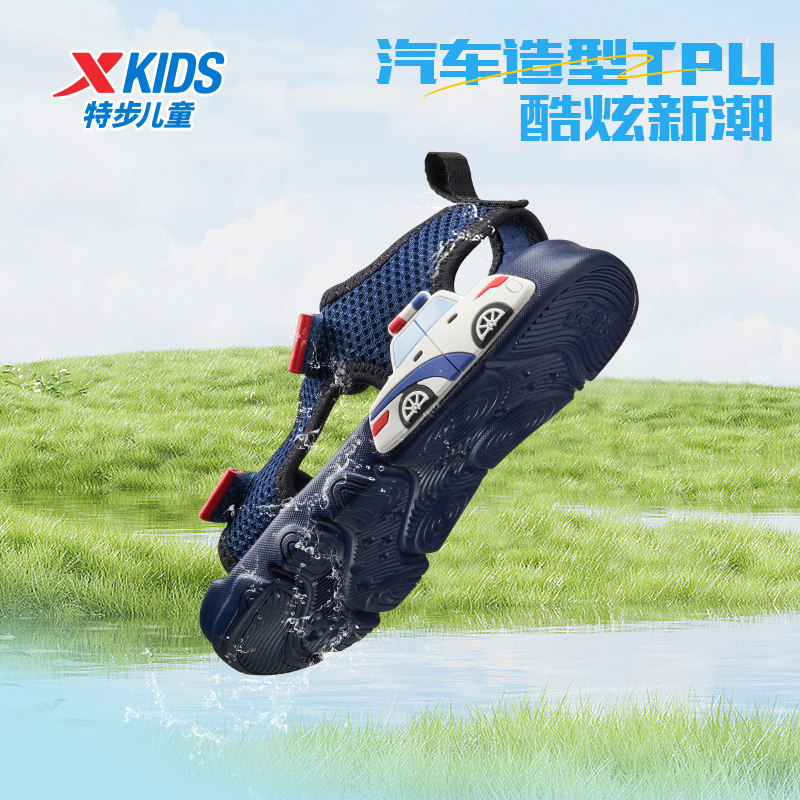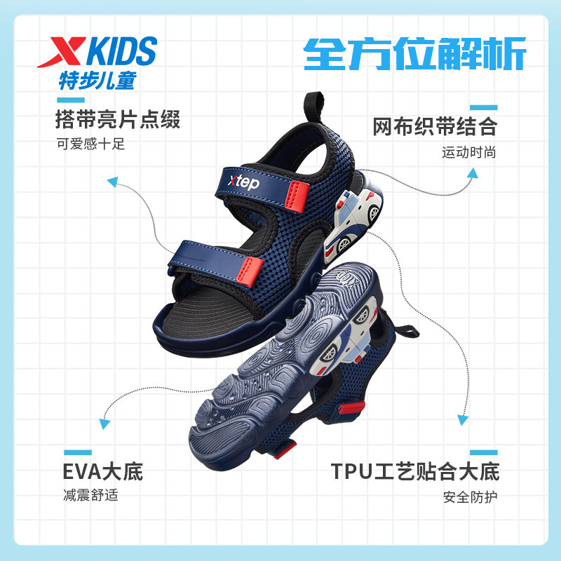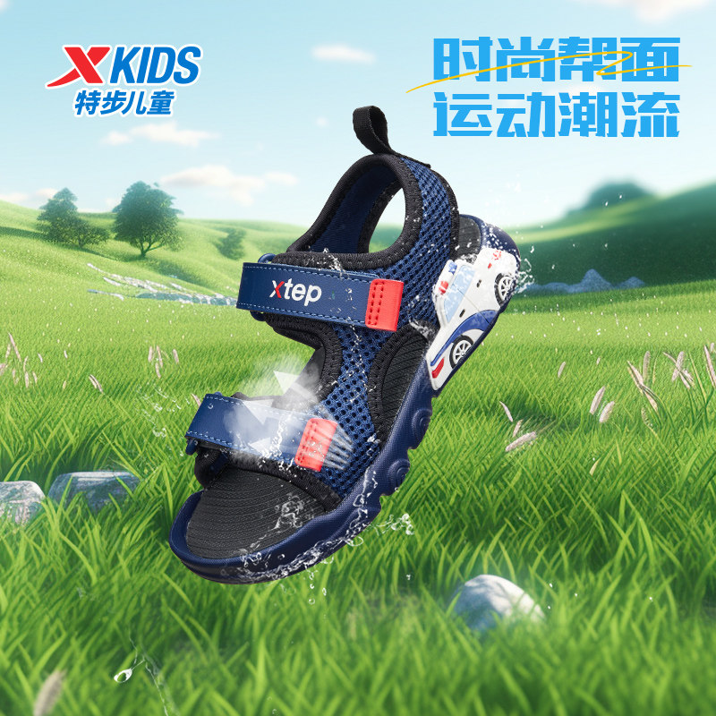 特步童鞋夏季小童透气儿童户外露趾凉鞋男童防滑耐磨魔术贴沙滩鞋