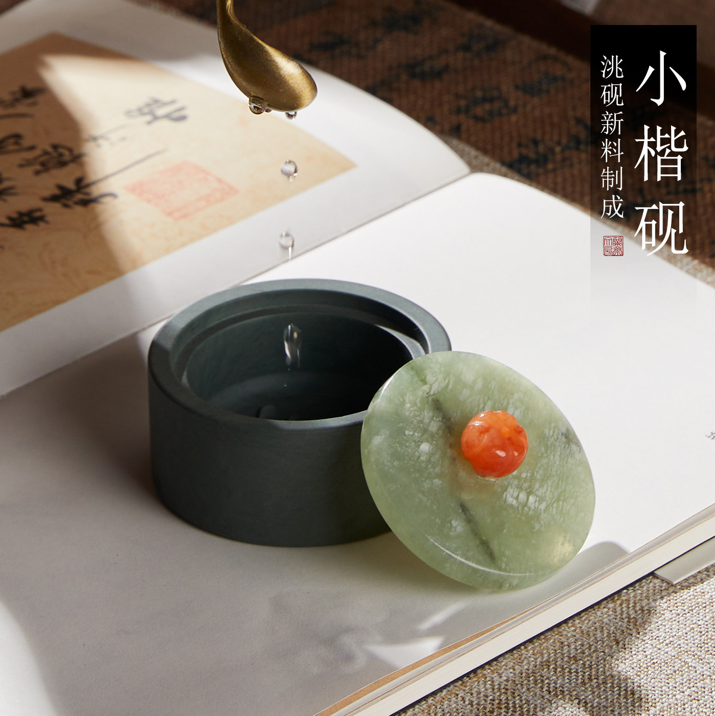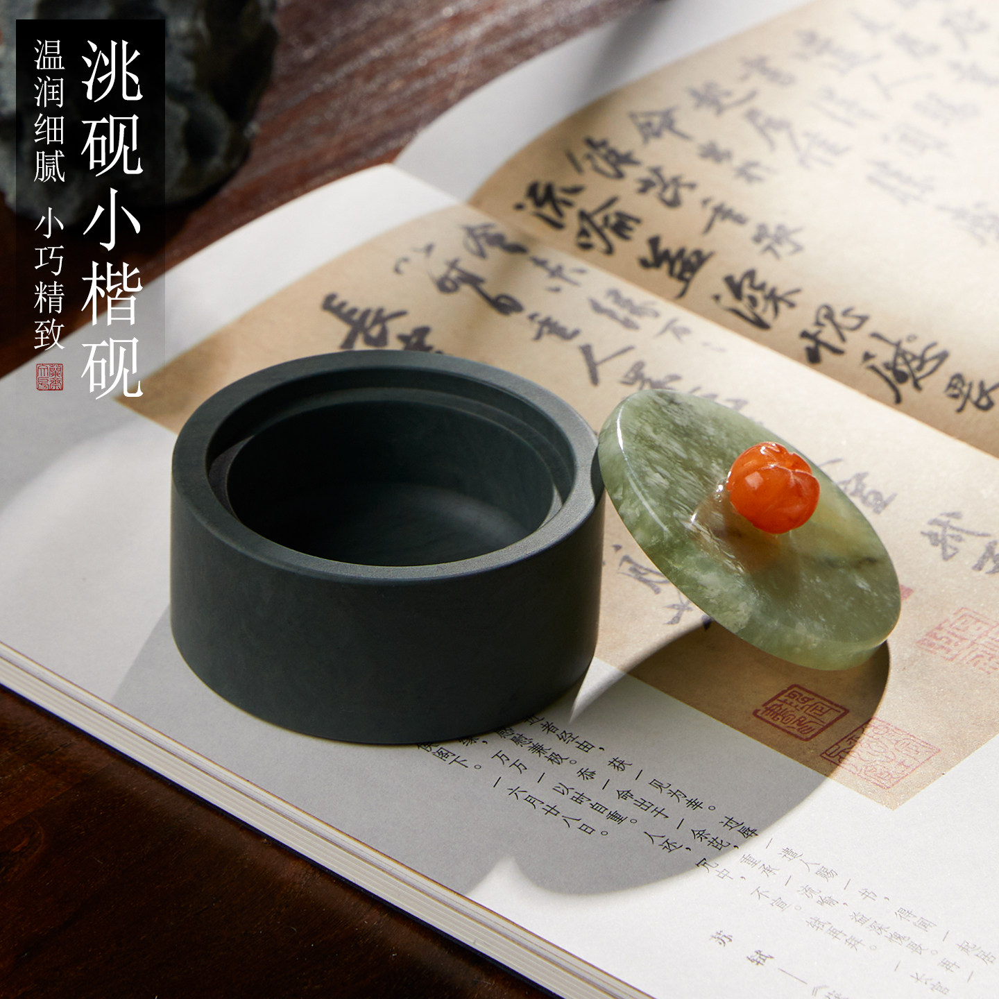 兰斋玉石砚台书法专用文房四宝笔墨纸砚墨汁墨条墨池墨台墨盒带盖毛笔可磨墨小学生初学迷你小墨碟