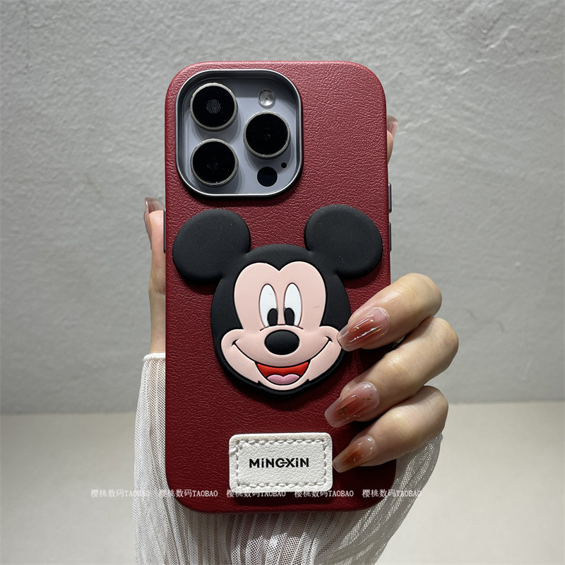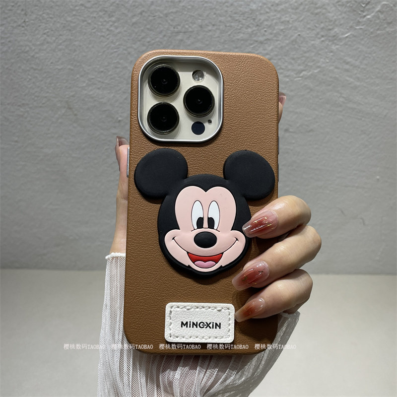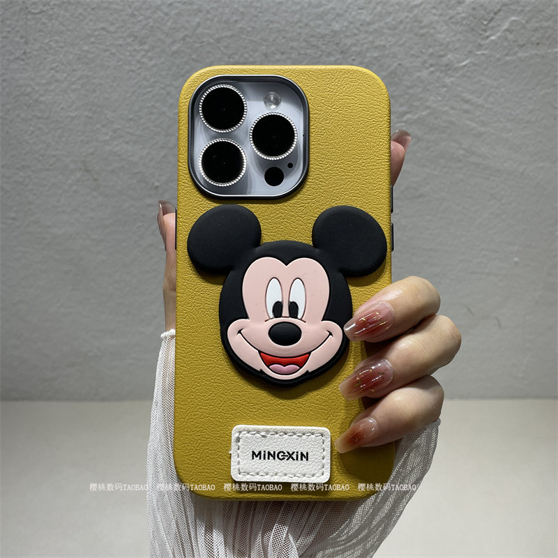 17pro米奇秋冬款适用苹果14promax手机壳皮纹iPhone16pro可爱卡通15PM全包防摔高级感小众设计师13日韩12女生