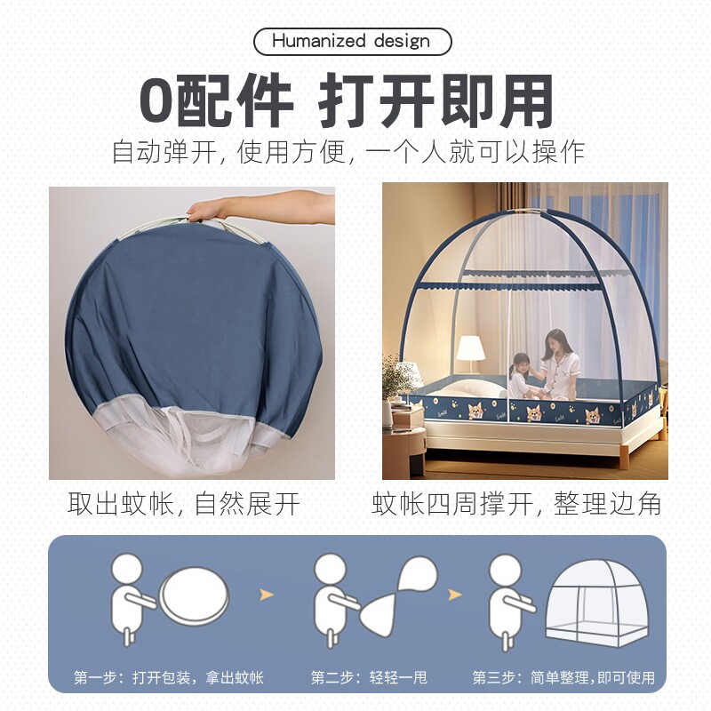 蒙古包蚊帐全罩式防蚊家用新款免安装防摔婴儿童防掉床防尘罩
