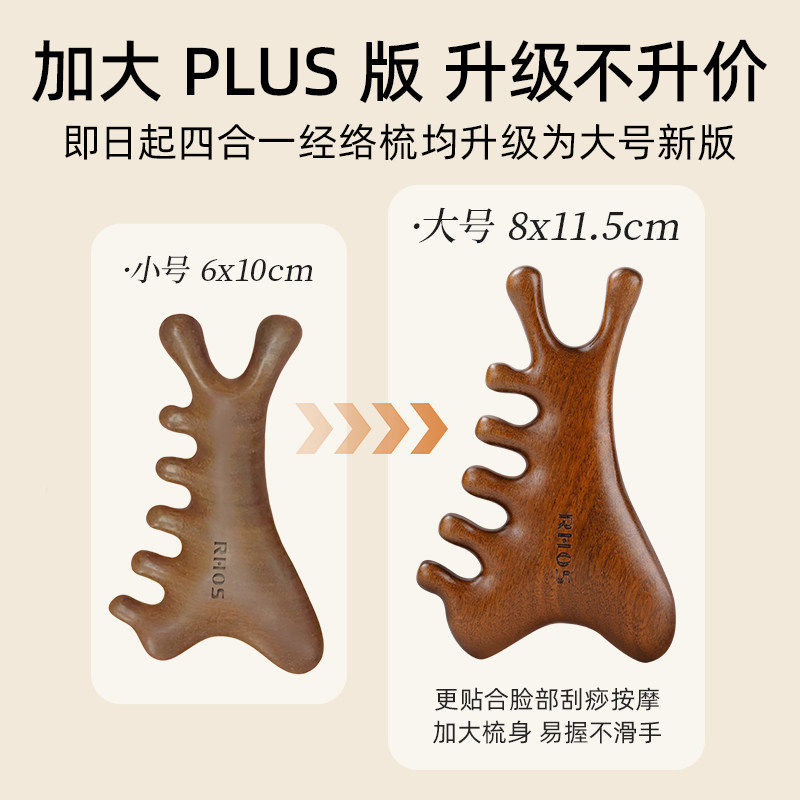 多功能四合一檀木梳头部疗刮痧疏通经络神器脸部眼部头皮按摩梳子