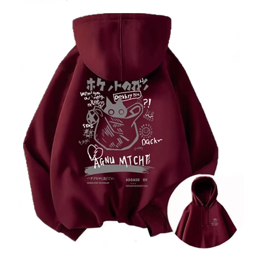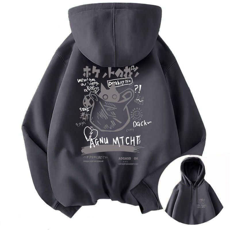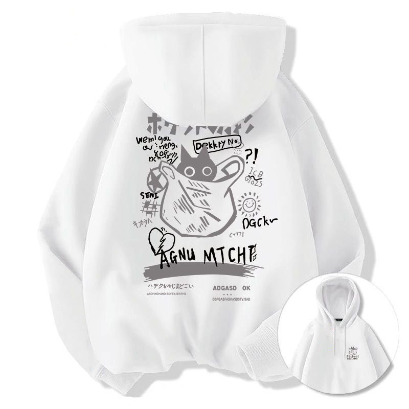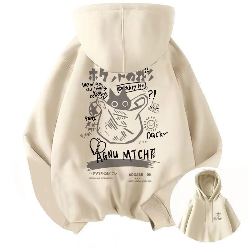 卡通猫咪连帽卫衣男女加绒oversize宽松秋冬重磅大码外套上衣贴身