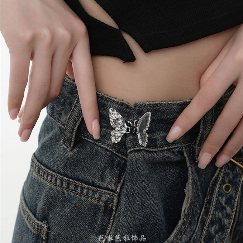 新中式蝴蝶腰扣女收腰神器裤腰收紧大小调节扣腰围改小牛仔裤耳钉