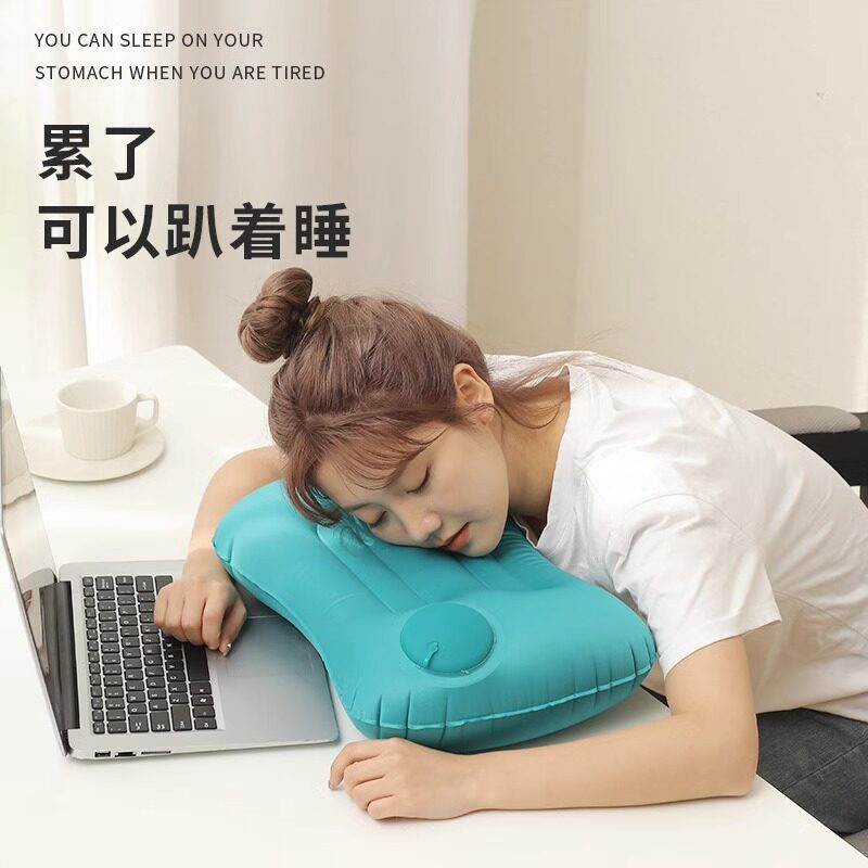 按压充气枕头飞机高铁长途坐车护腰靠垫户外旅行露营折叠便携枕头