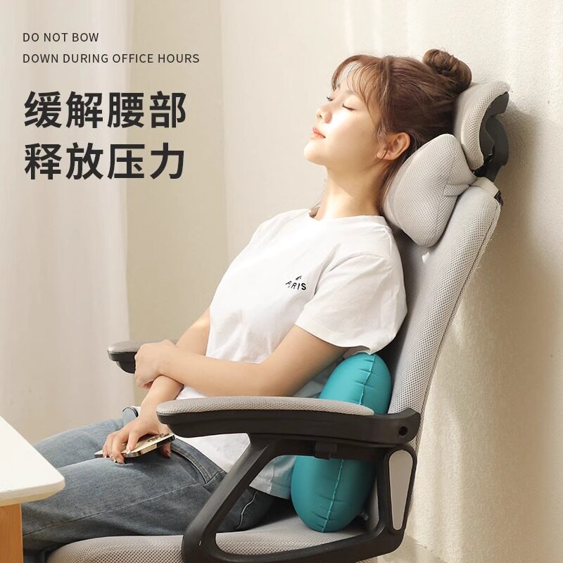 充气旅行枕头便携按压自动枕头飞机腰垫趴睡飞机护腰枕靠枕腰靠垫