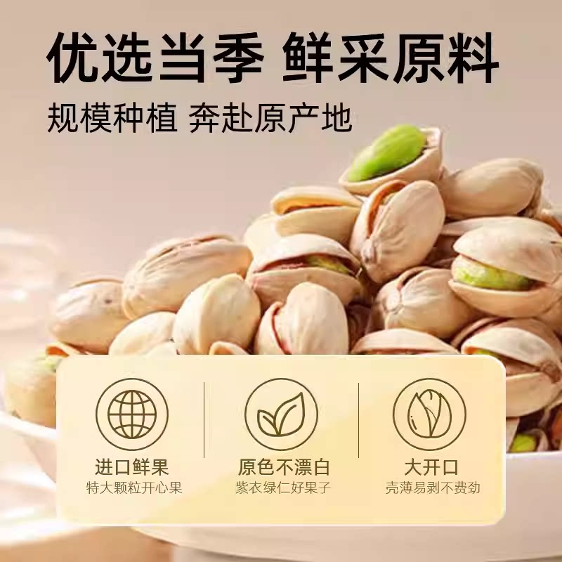 开心果无漂白原味原色特大颗粒新货500g孕妇坚果添加年货零食批发