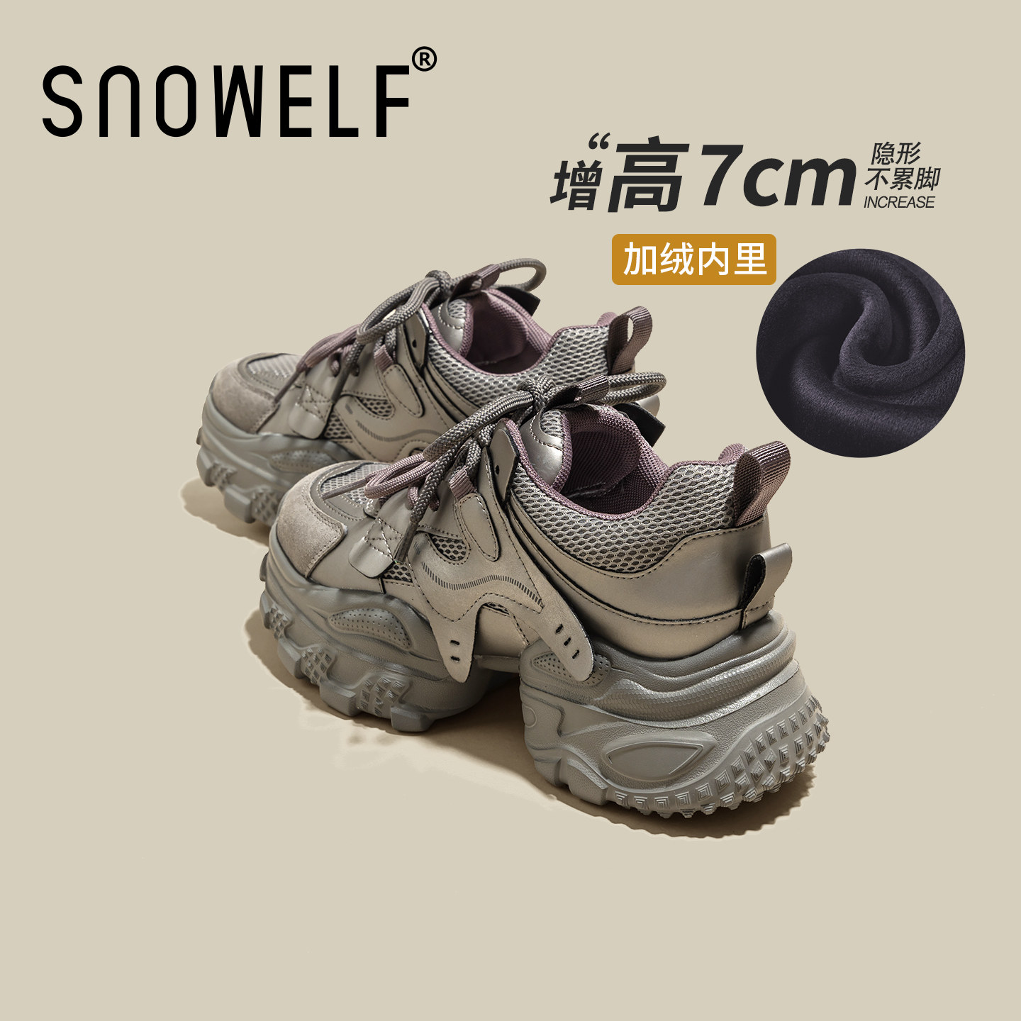 银色厚底老爹鞋子女款2025新款爆款冬季百搭加绒保暖休闲鞋增高鞋
