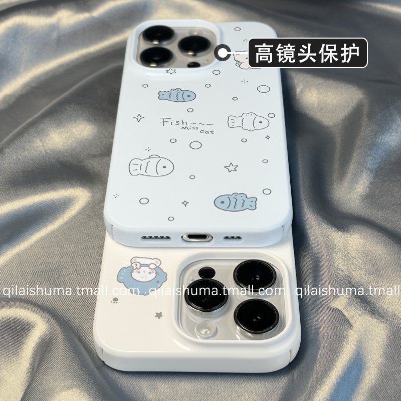 柒莱菲林壳适用于苹果17/16promax手机壳新款iPhone15男女14日韩ins蓝色小鱼13防摔12硬11保护套xs硅胶xr软