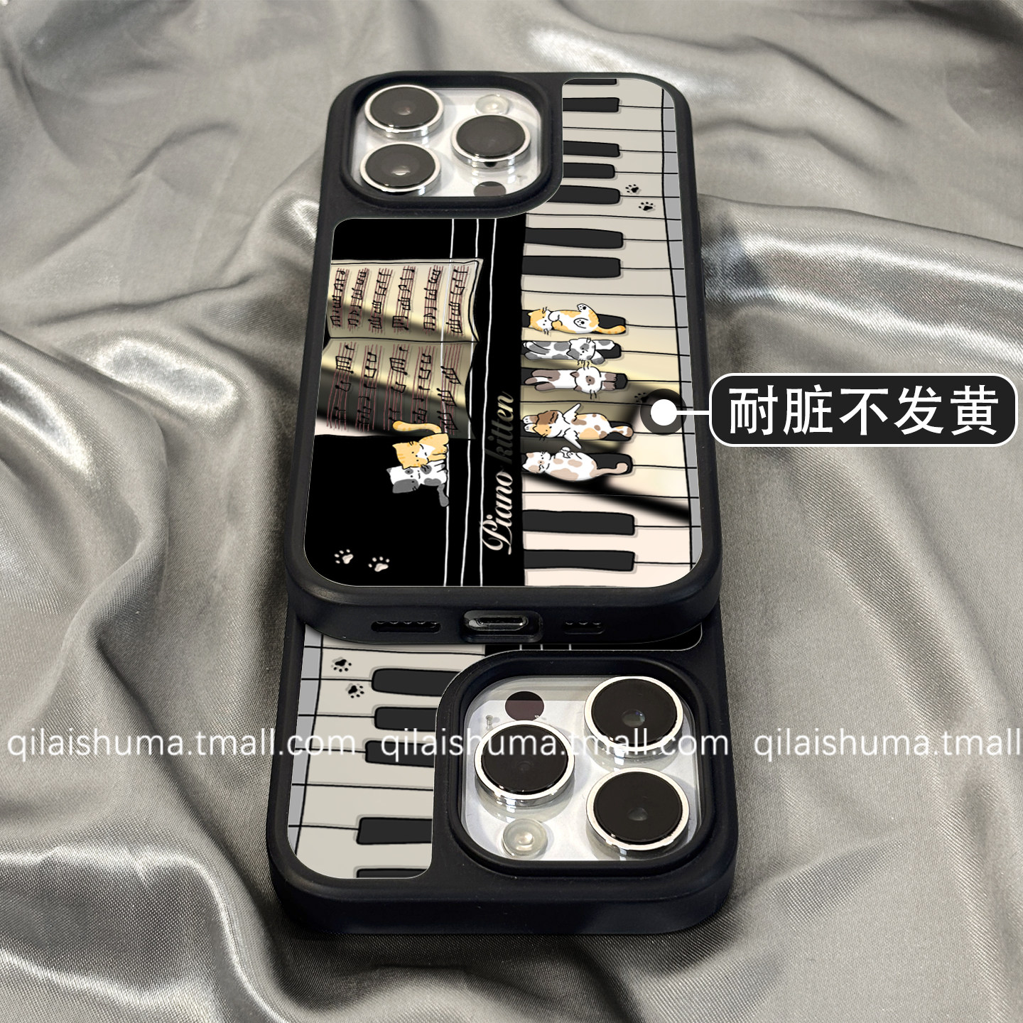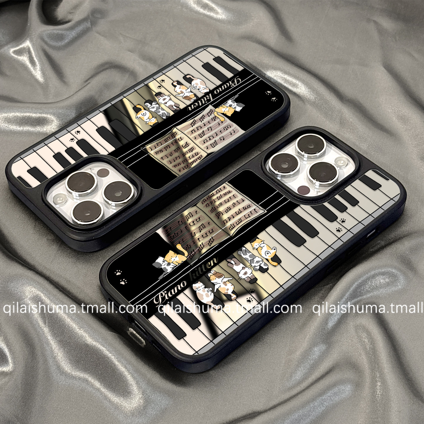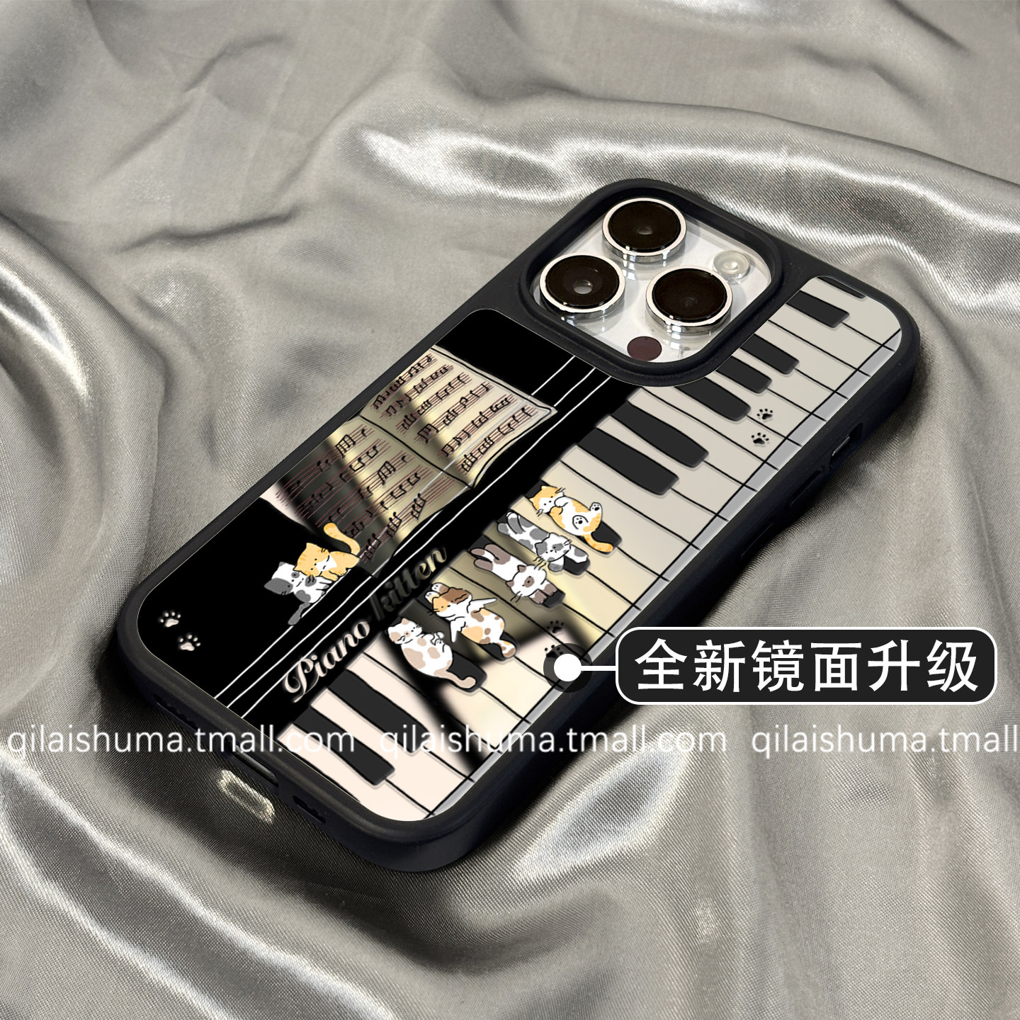 柒莱高级镜面壳适用于苹果17/16promax手机壳新款iPhone17女15创意可爱钢琴小猫14补妆镜13防摔12硅胶11软套