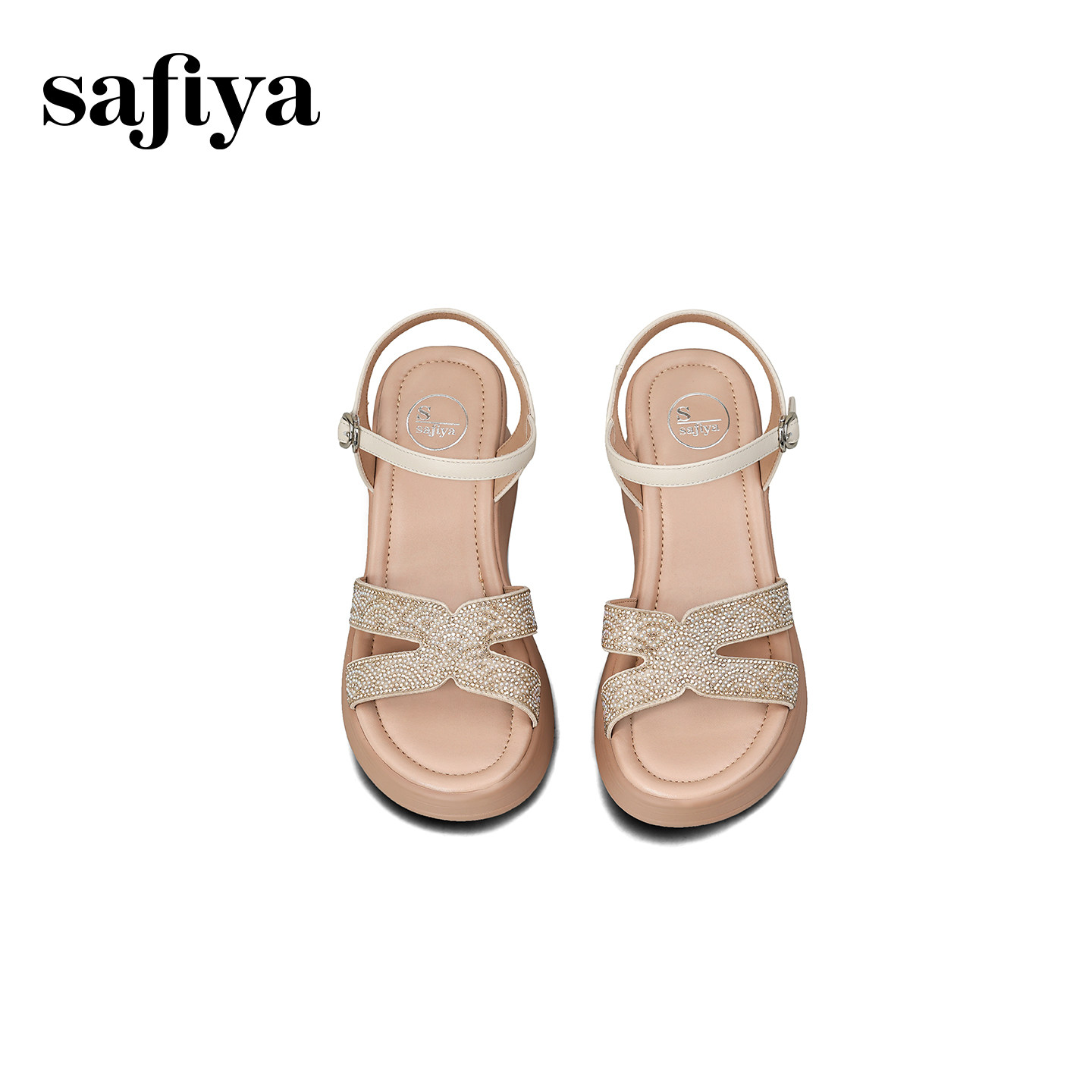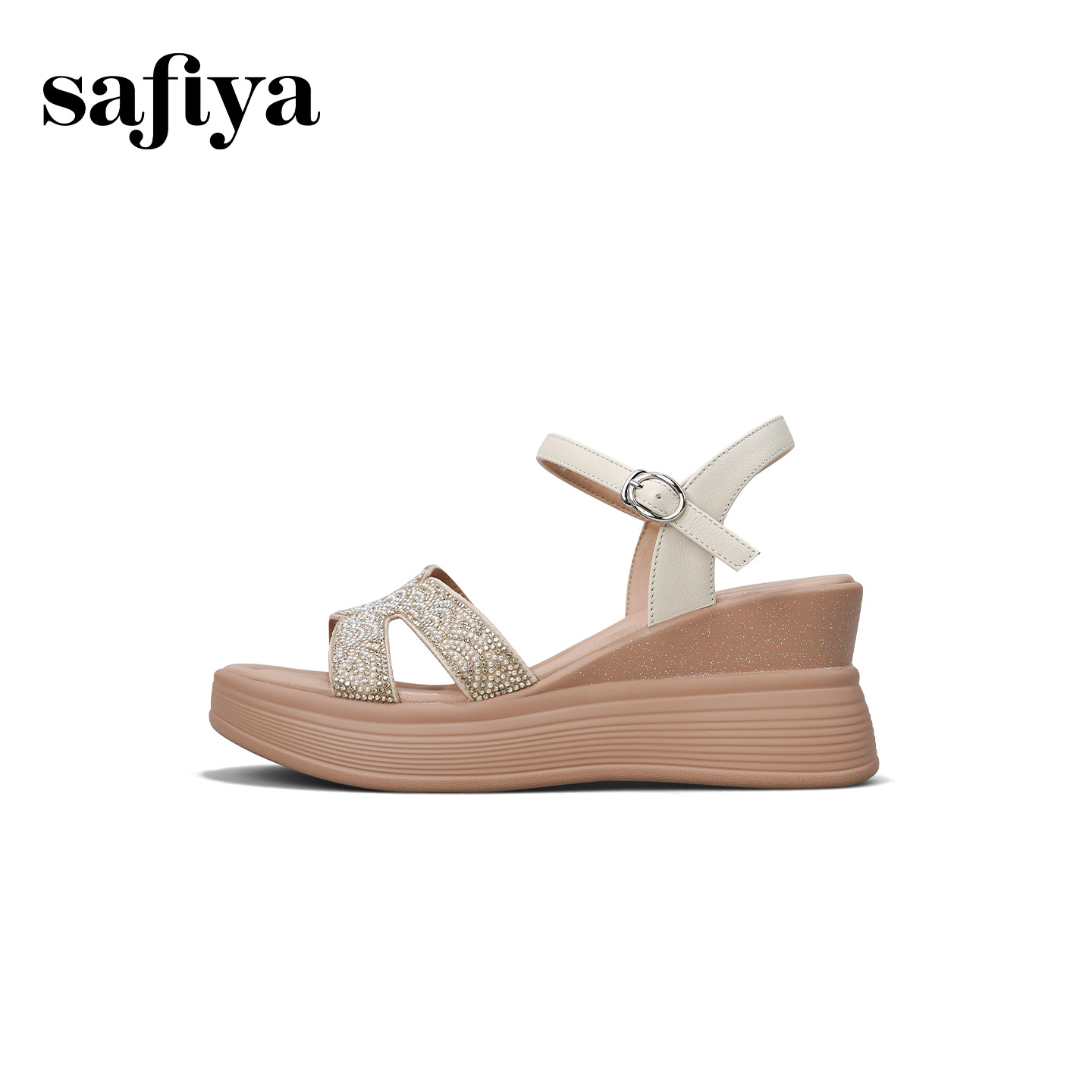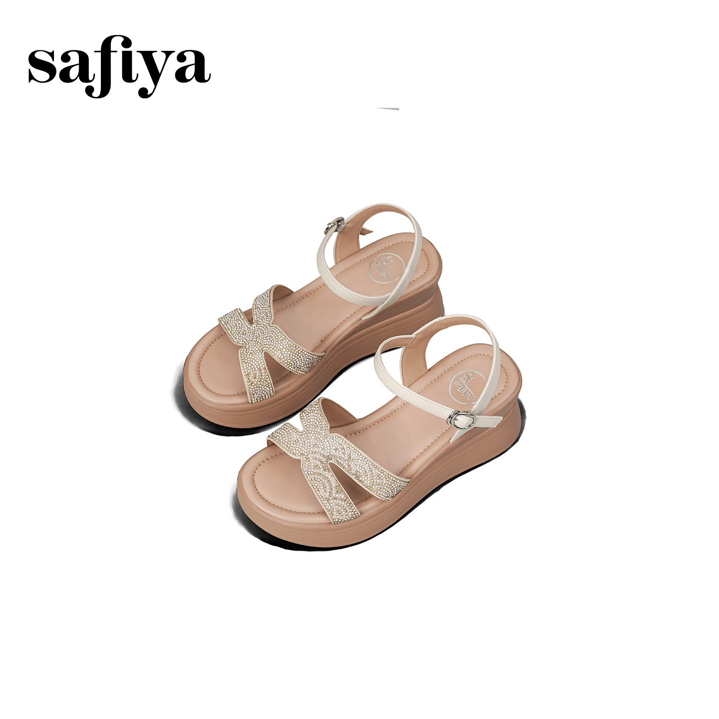 索菲娅2026夏季新品配裙子水钻坡跟增高不累脚一字带露趾休闲凉鞋
