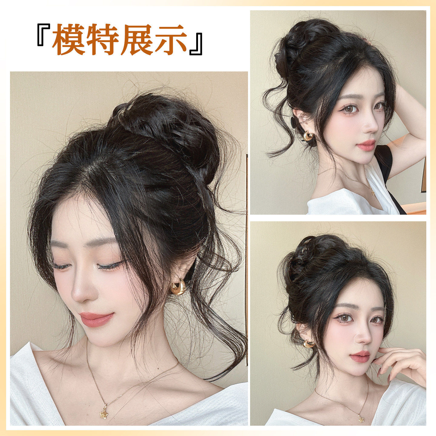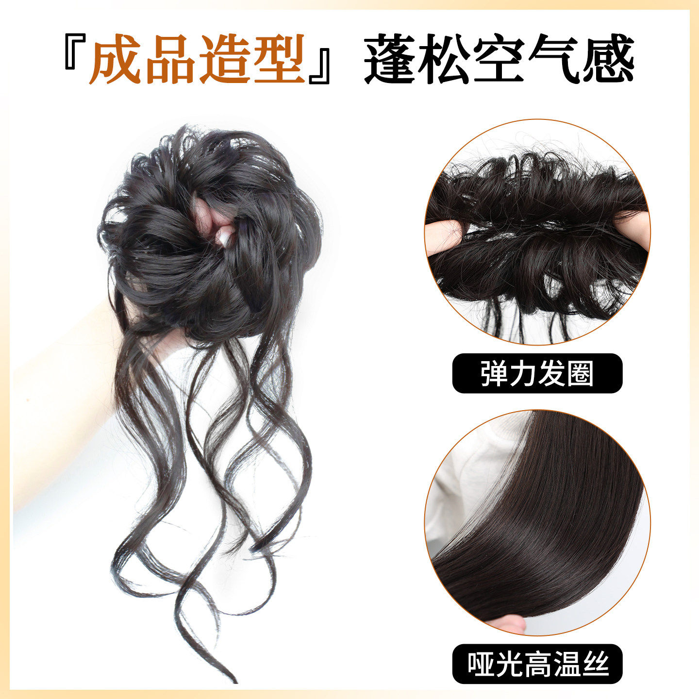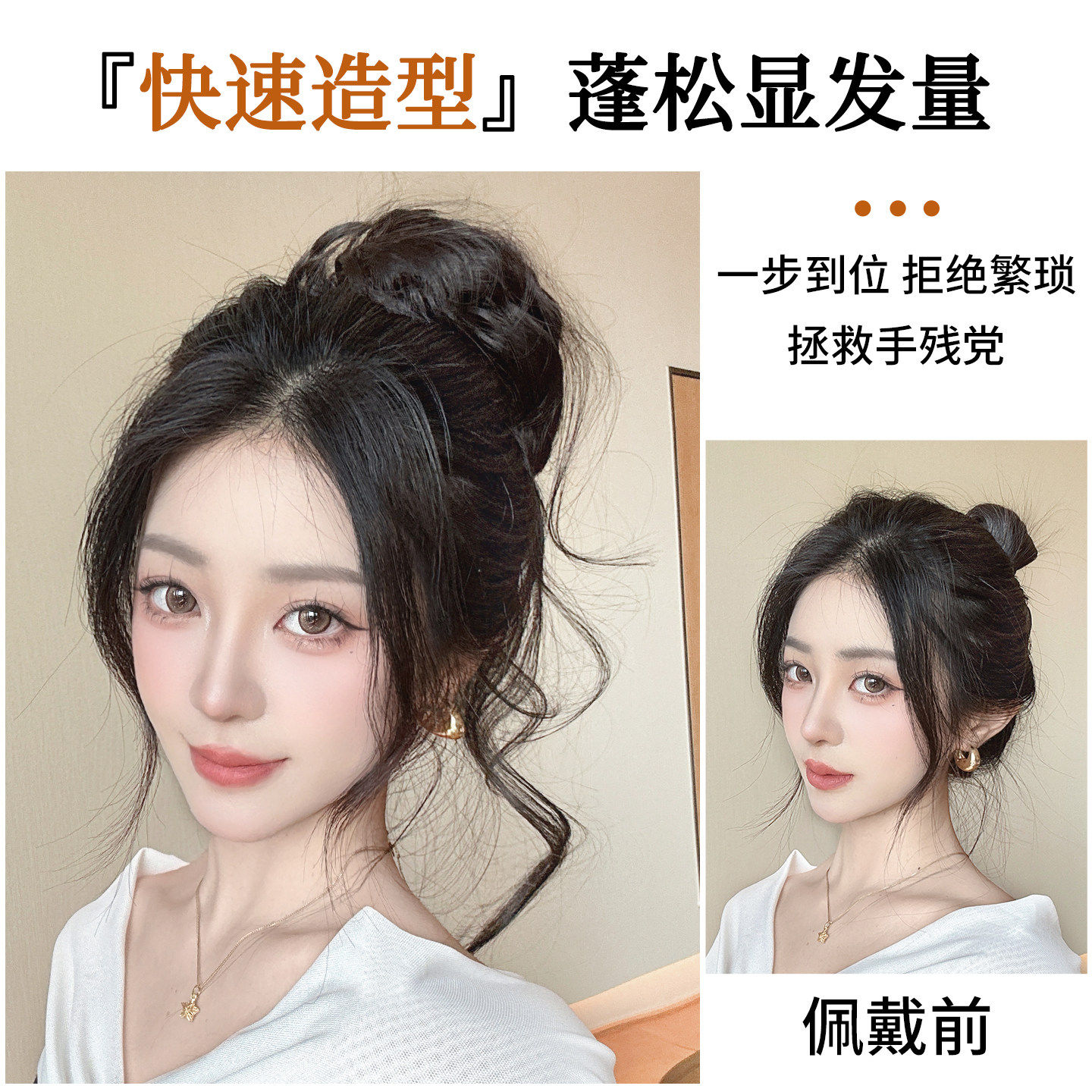 丸子头假发女抽丝龙须高盘发发圈仿真发花苞头增发发包蓬松造型