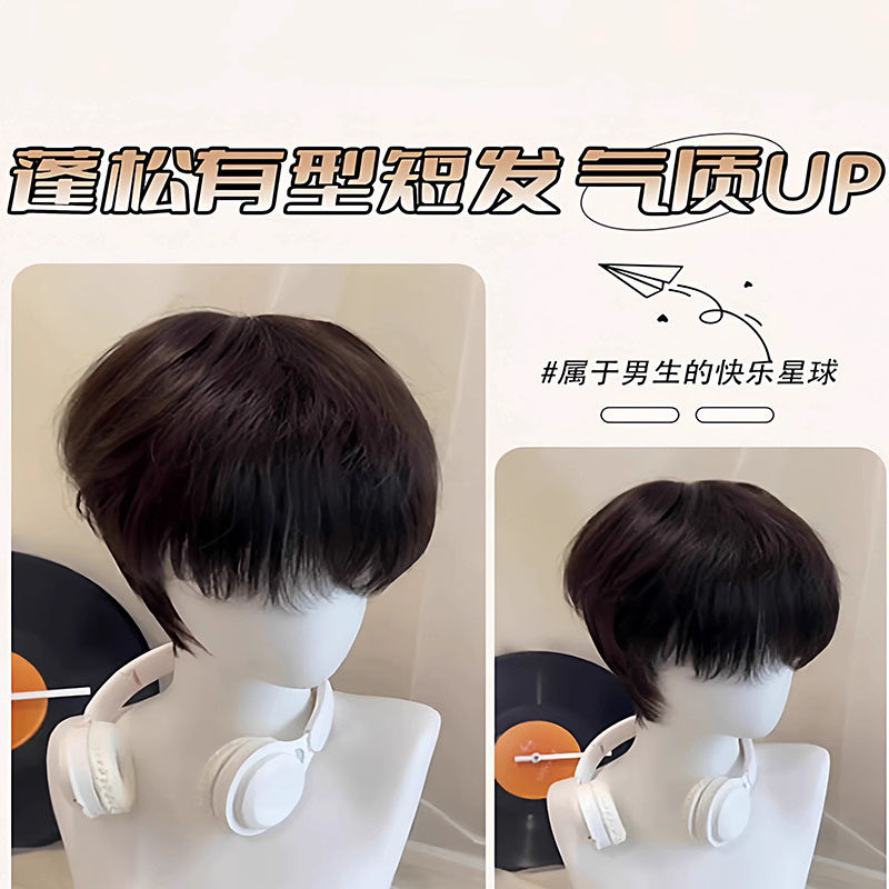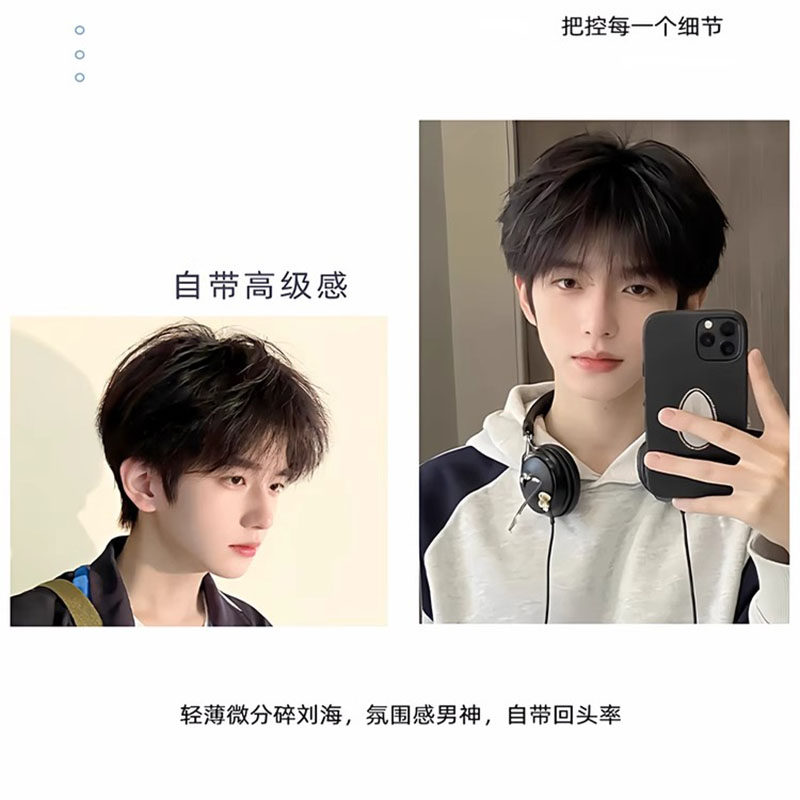 韩系微分碎盖假发男短发全头套日常造型蓬松自然整顶刘海少年感