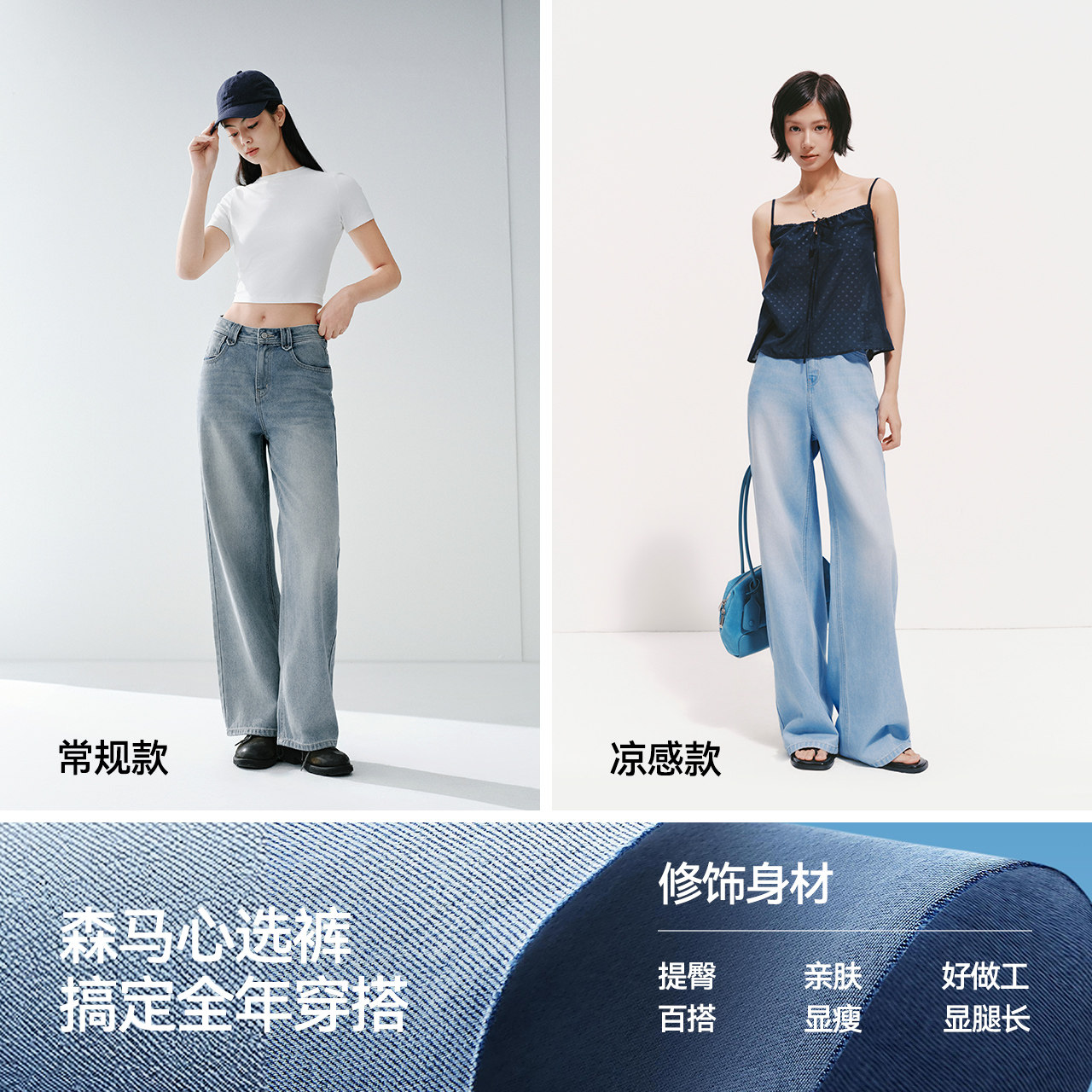 森柔牛仔|森马阔腿牛仔裤女2025秋冬白色牛仔裤简约女士高腰裤子