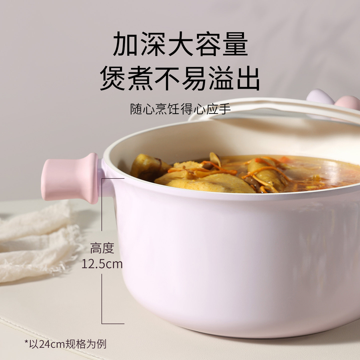 卡罗特蒸锅家用钛陶瓷不粘锅大容量汤锅双耳煮炖锅电磁炉燃气专用