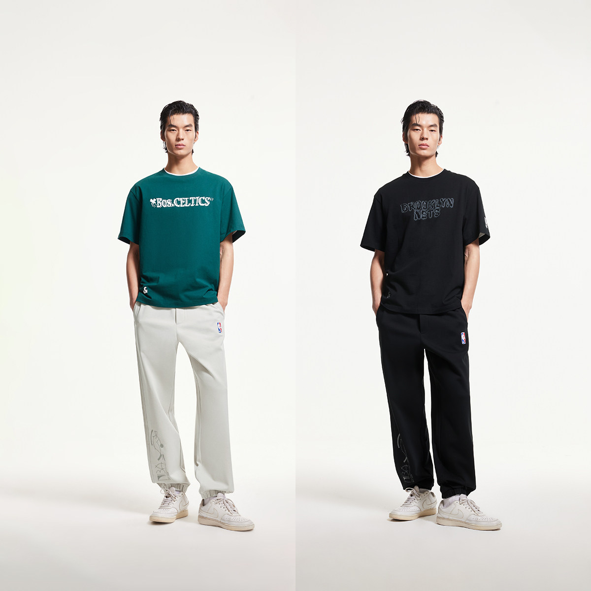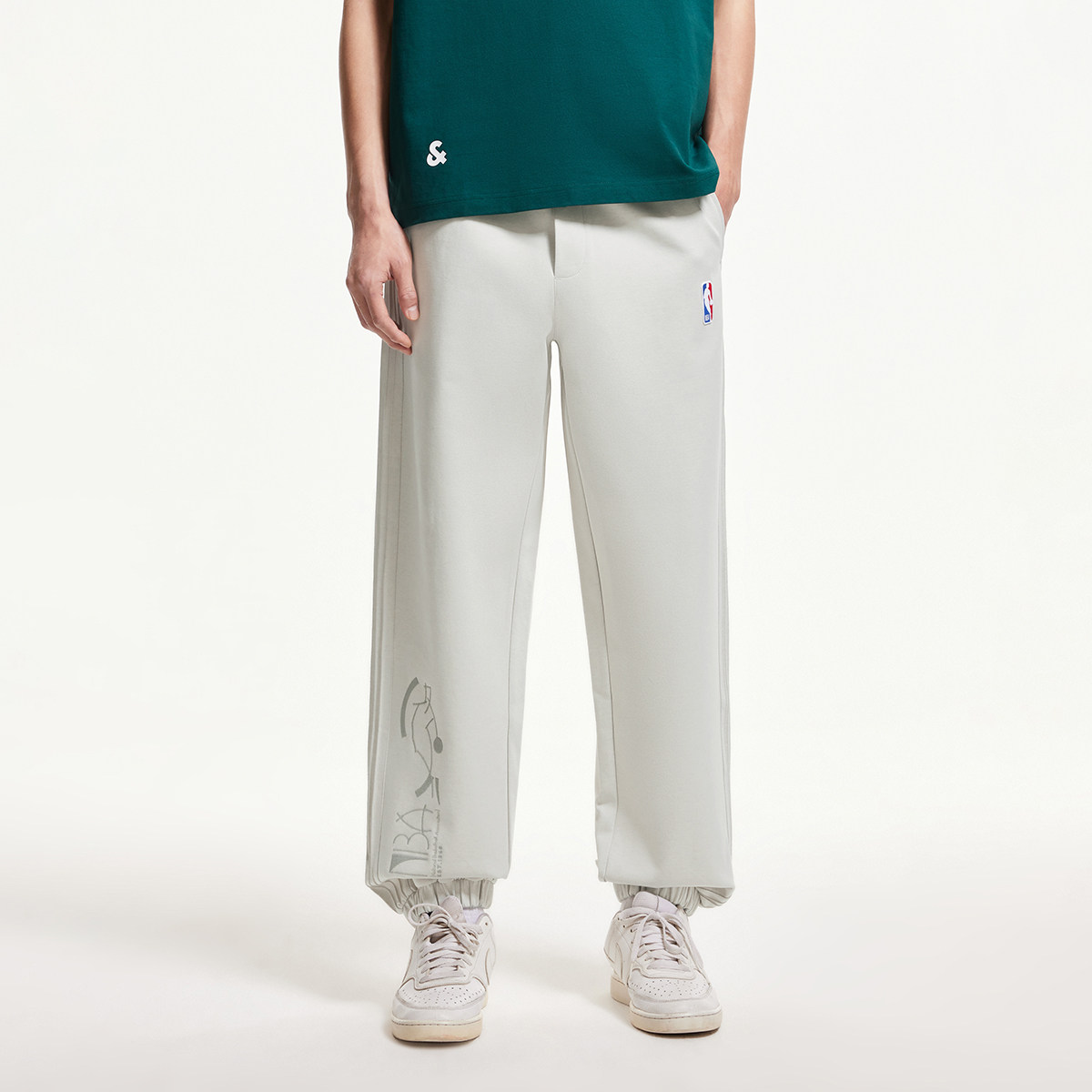 宽松束脚裤 松紧抽绳腰头,NBA贴布