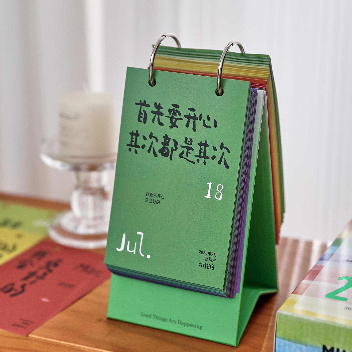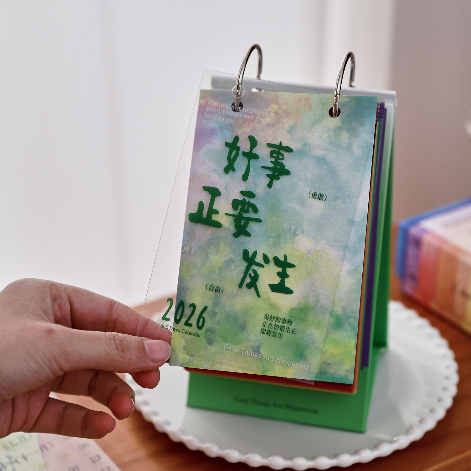 盐岛时光 好事发生365翻页台历2026版 每日一页励志日历桌面摆件