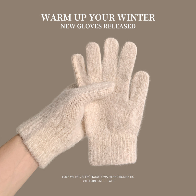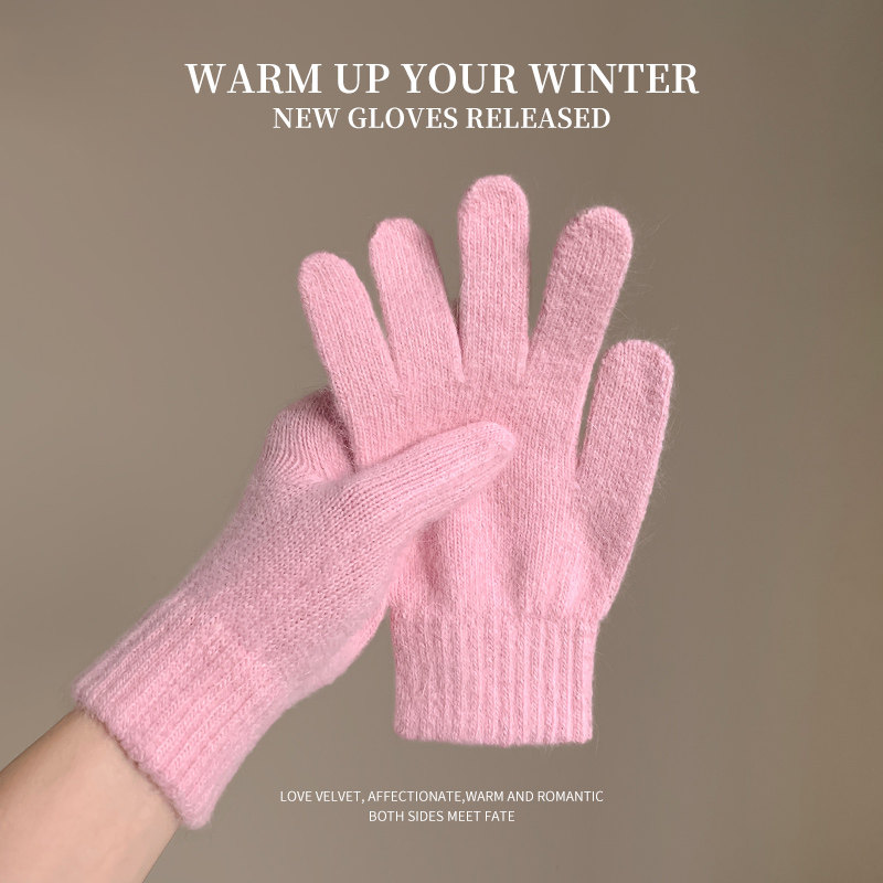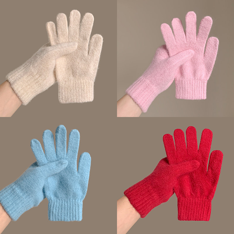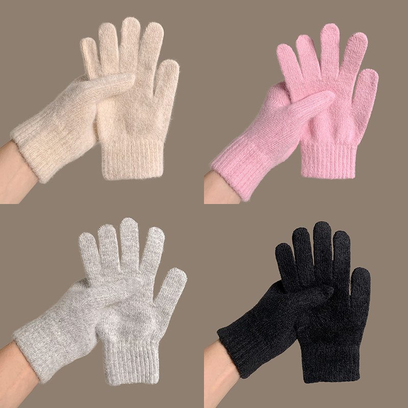 兔毛针织毛绒手套防寒2025年秋冬季保暖女学生纯色分指骑车滑雪