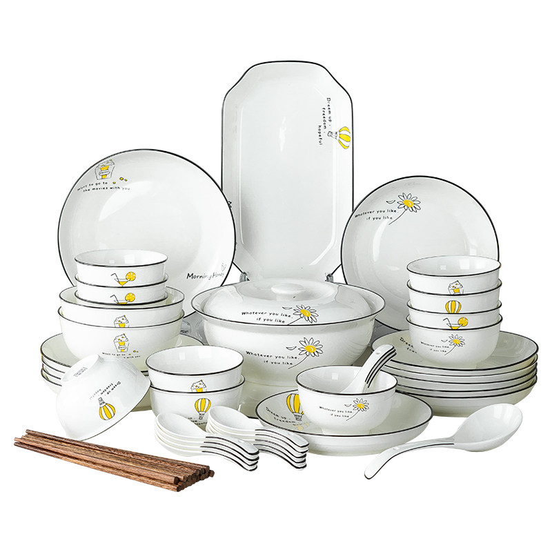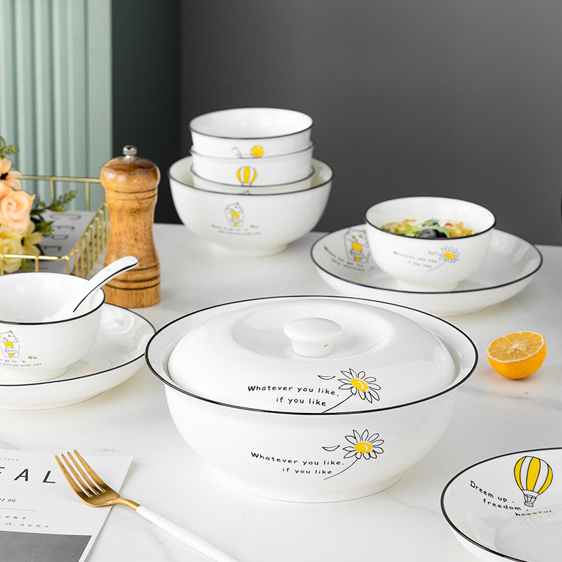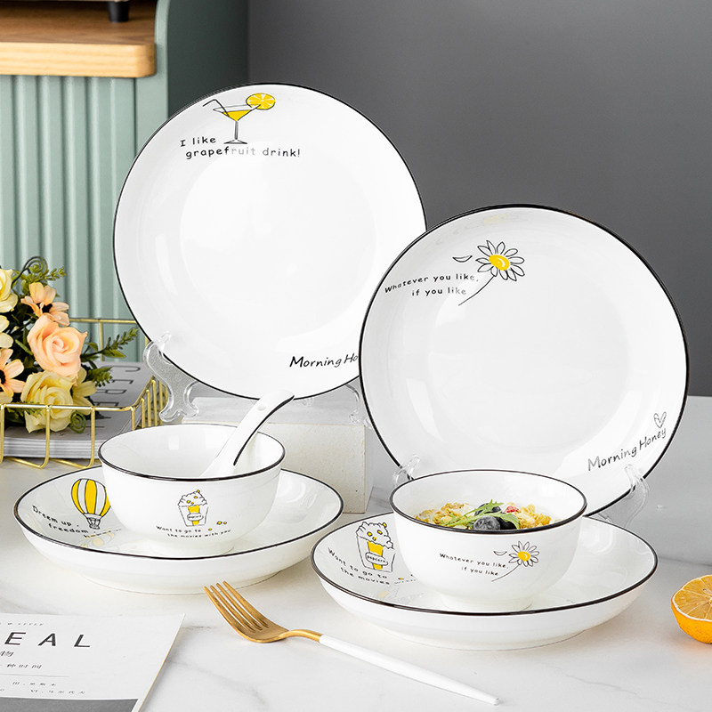 奶油风陶瓷碗家用卡通菜盘子可爱米饭碗汤碗釉下彩儿童餐具耐高温
