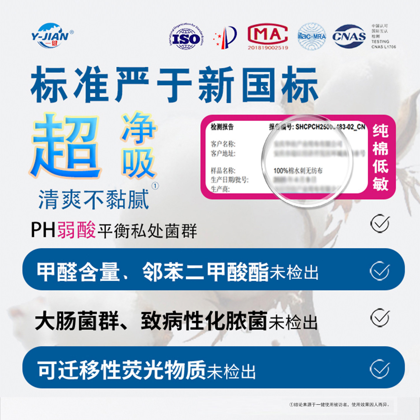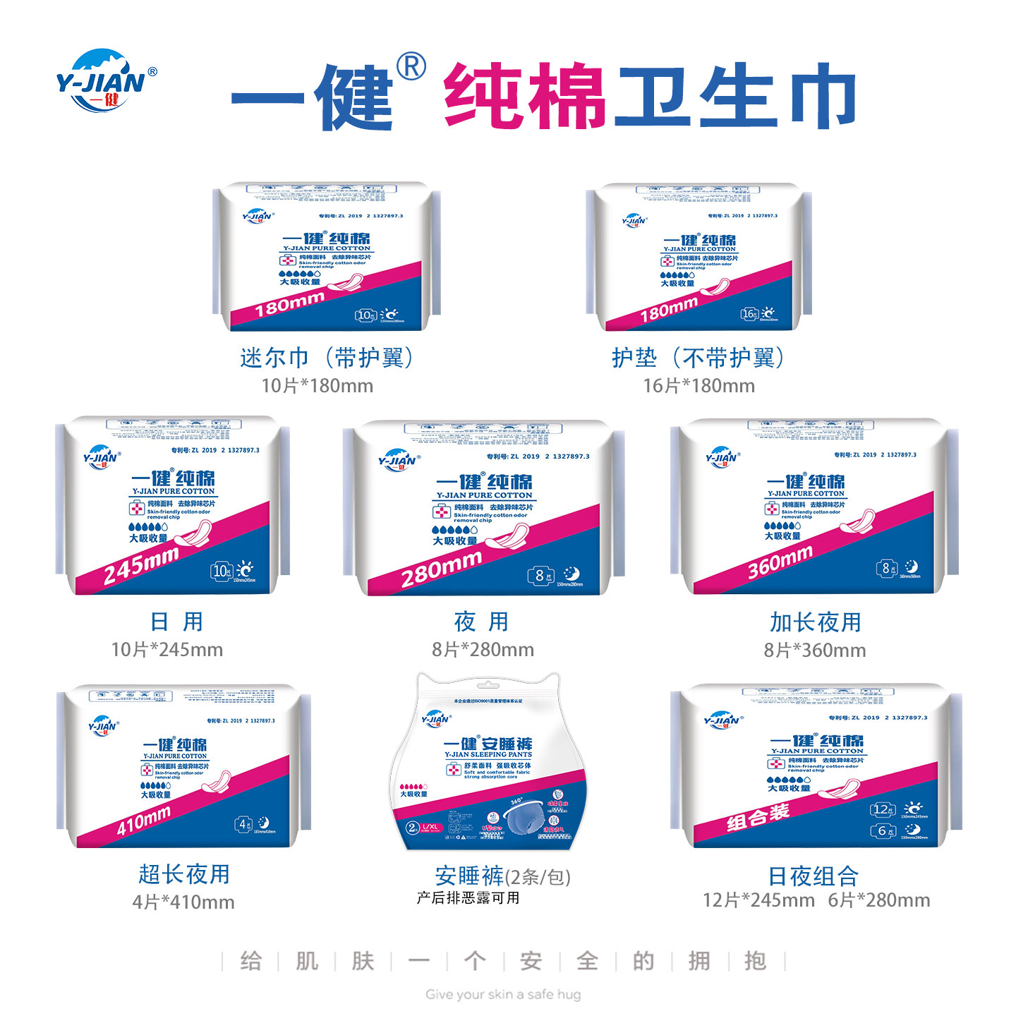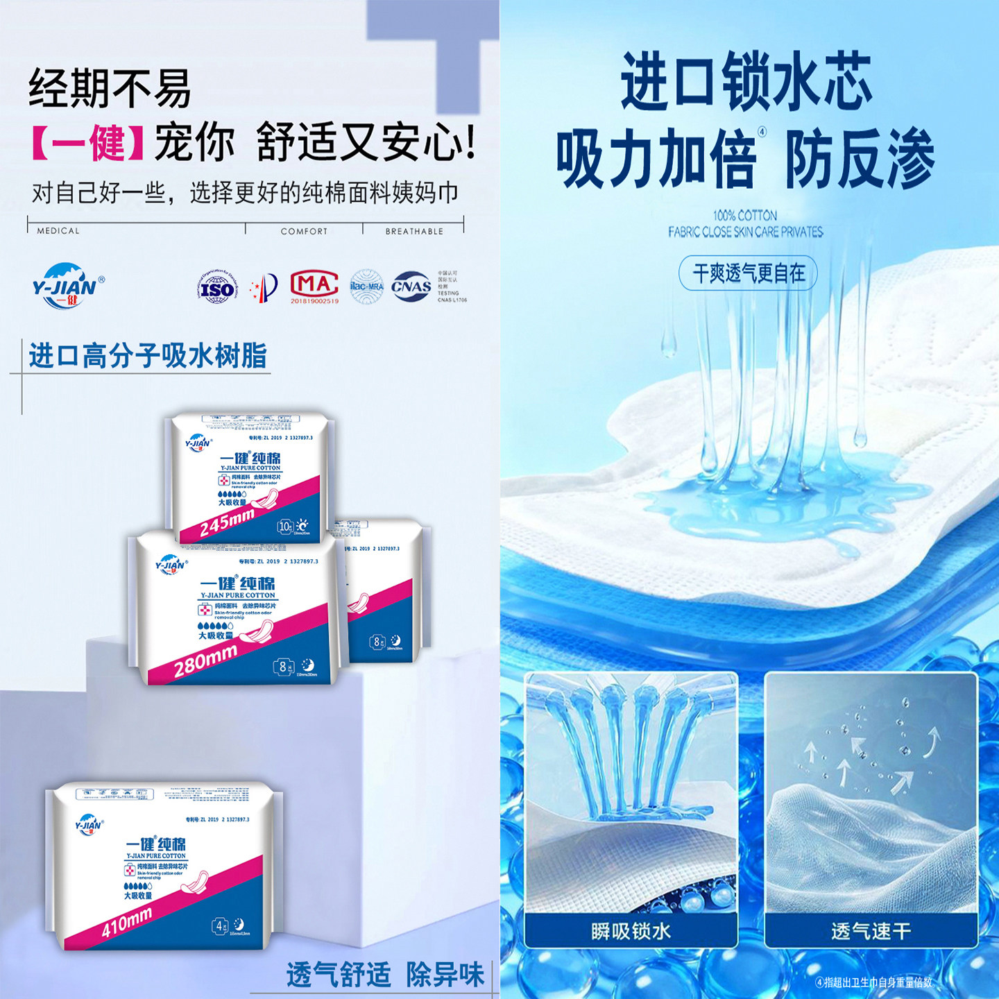 一健纯棉敏感肌舒适安全亲肤除异味专利日用夜用姨妈巾卫生巾透气