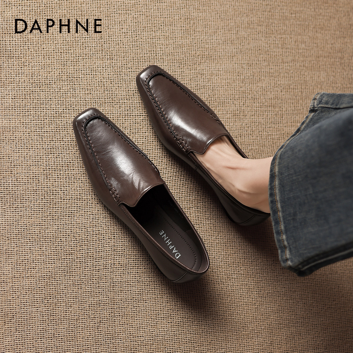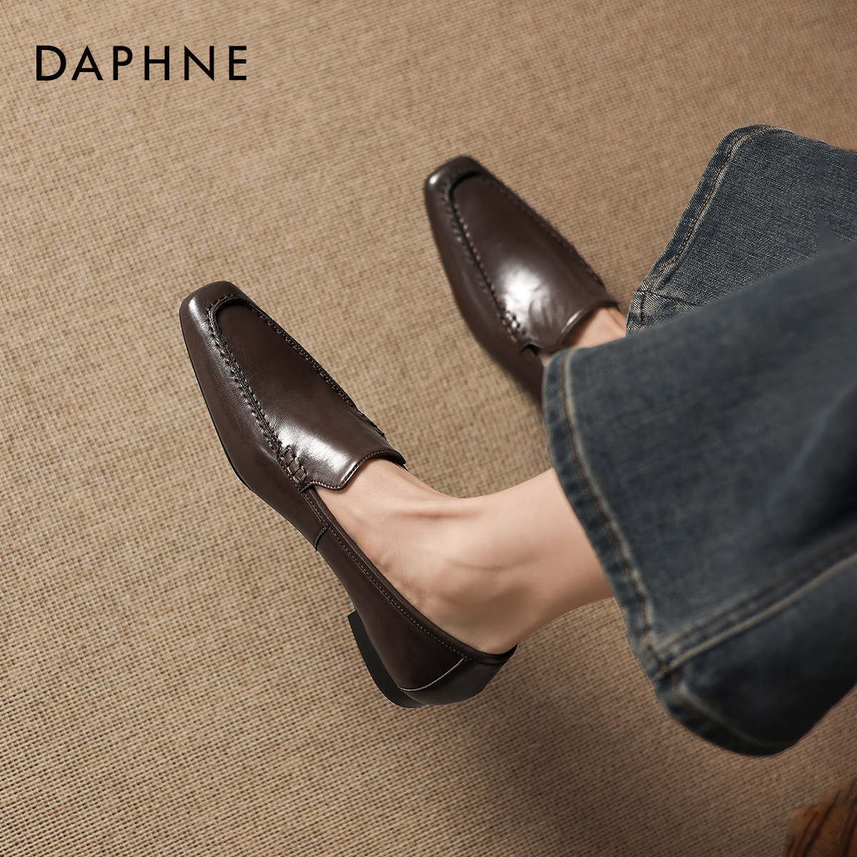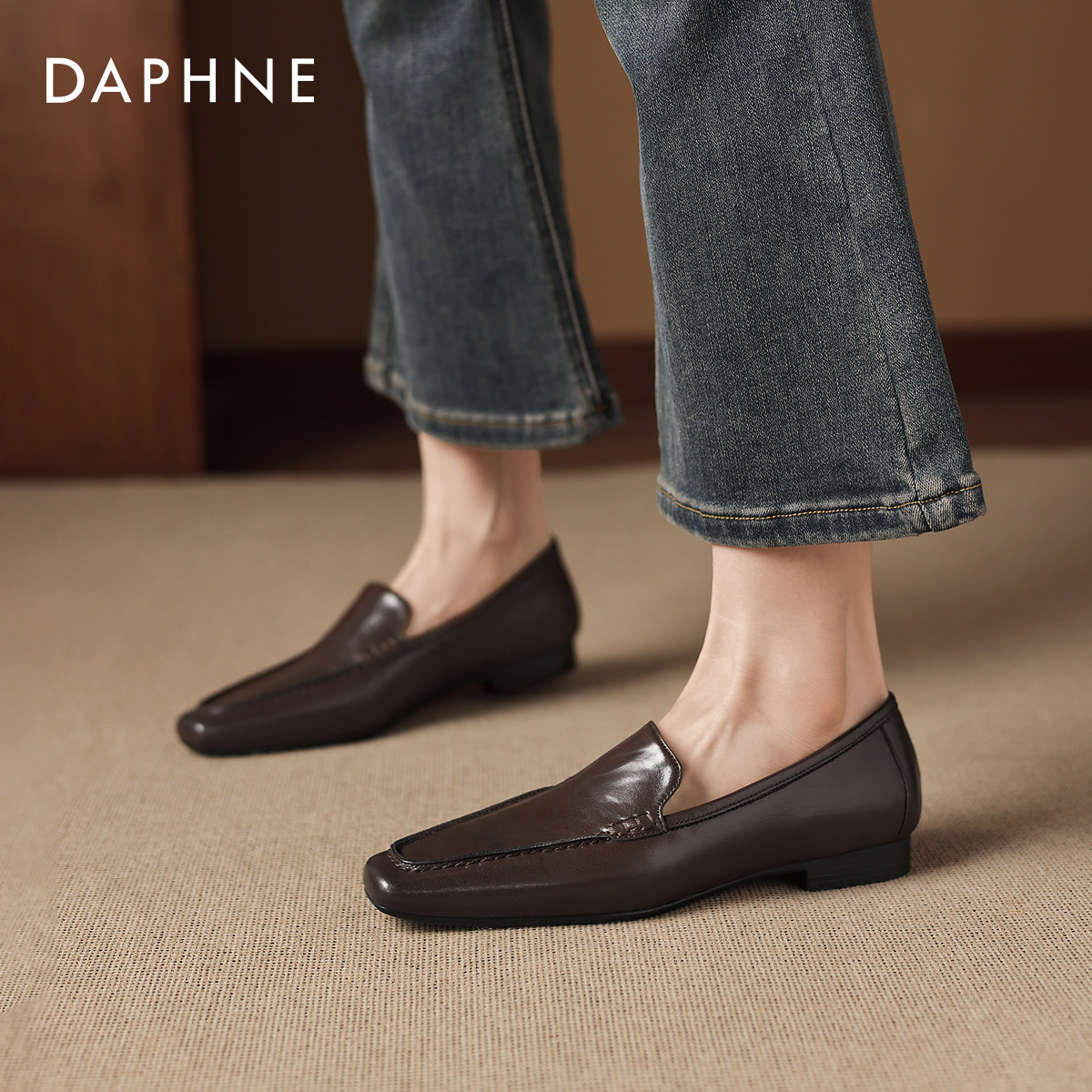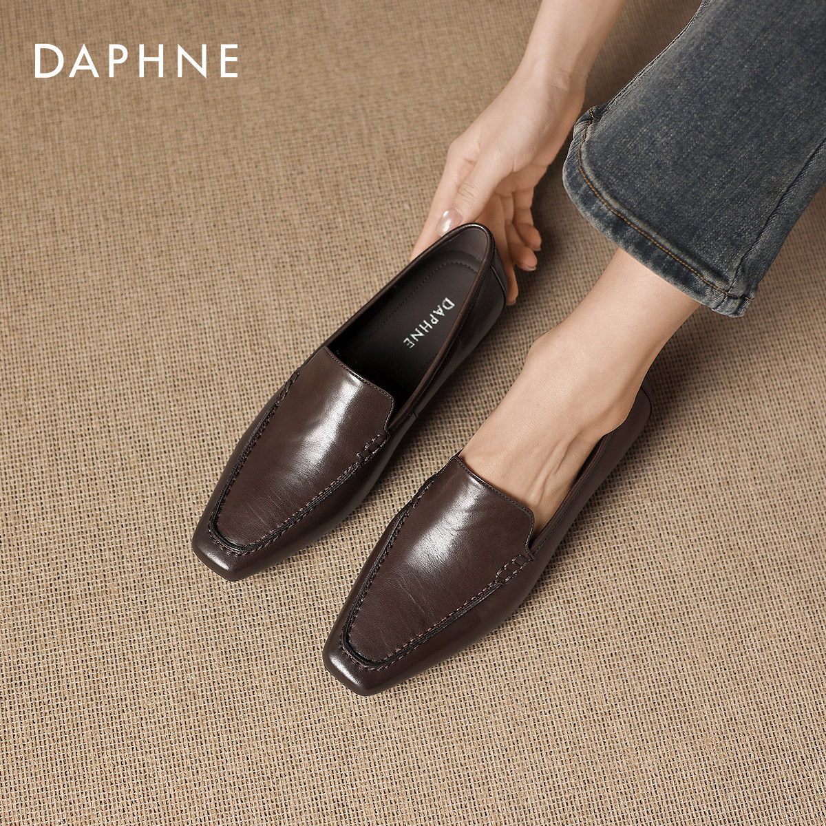 达芙妮乐福鞋女2026新款春季平底一脚蹬单鞋豆豆女鞋老钱风小皮鞋