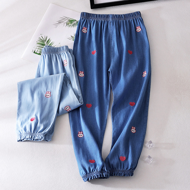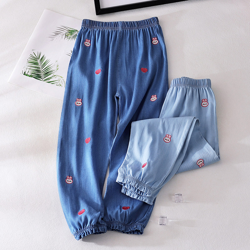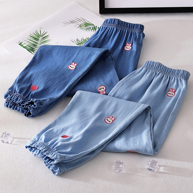 【清仓特惠】女童裤子夏季薄款长裤儿童天丝牛仔裤宝宝束脚防蚊裤