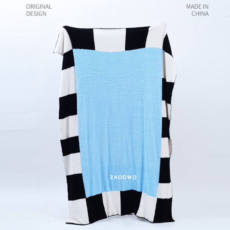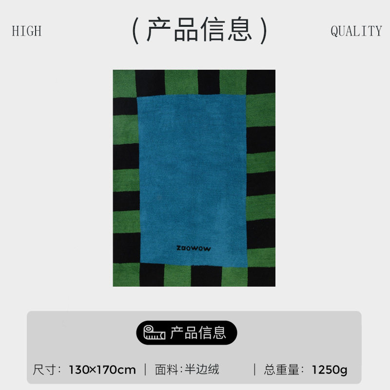 wow孟菲斯格子纹加厚半边绒毯子毛毯午睡毯沙发毯盖布ins卧床