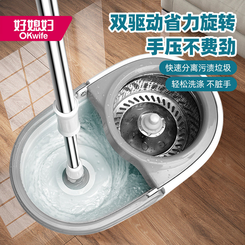 好媳妇带桶旋转拖把 家用懒人免手洗甩水拖把旋转桶脱水清洁拖把