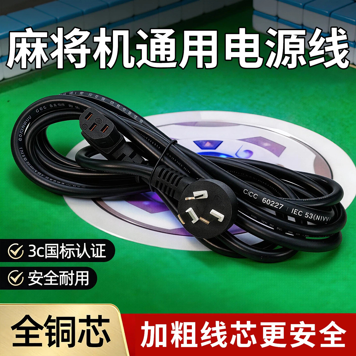 麻将机电源线三孔麻将桌插头插电线通用机麻配件加长加粗全铜电源