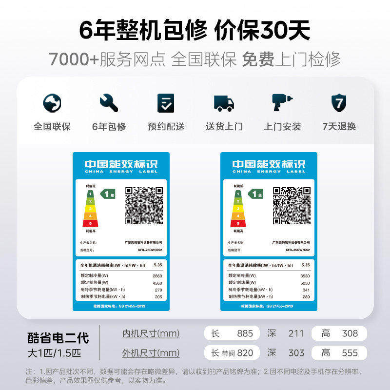 美的空调酷省电二代大1.5匹1匹一级能效变频冷暖家用挂机官方正品