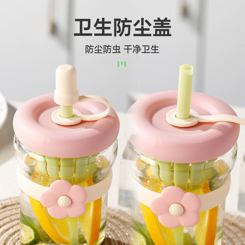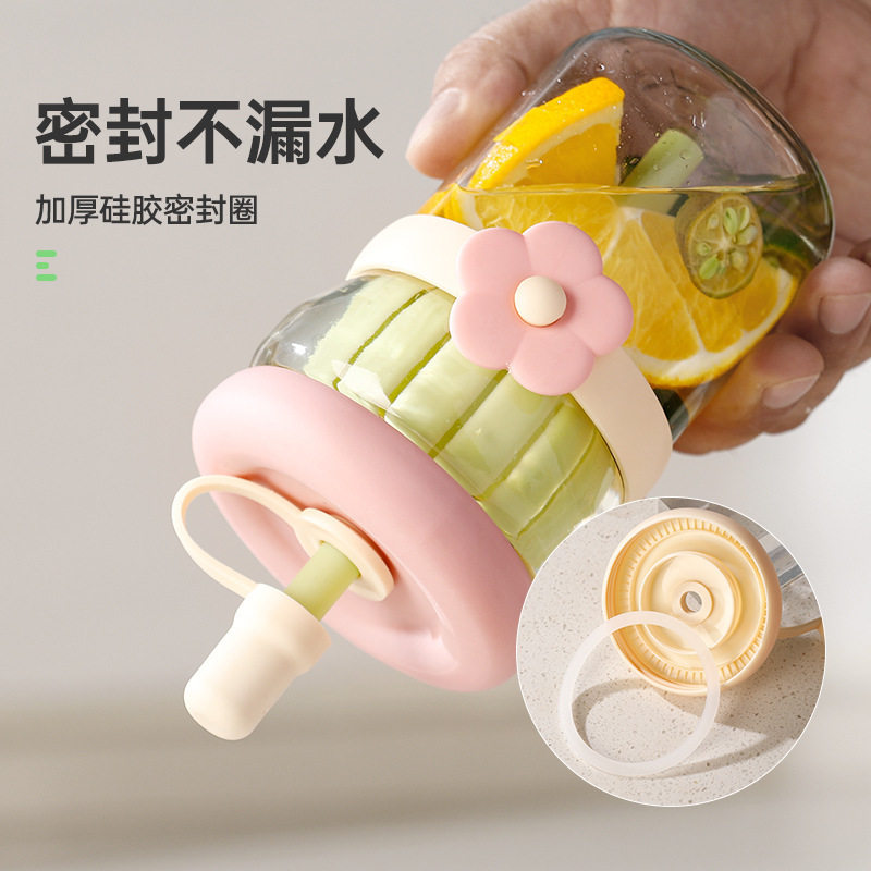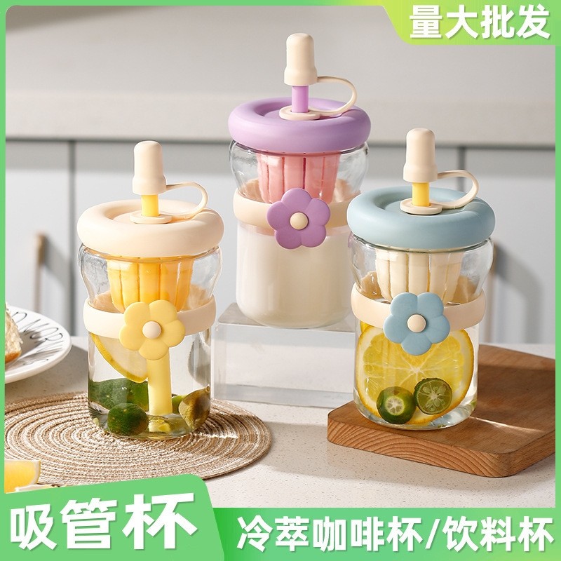 花朵杯网红高颜值玻璃杯百货杯子便携礼品吸管杯水杯可爱网红爆款