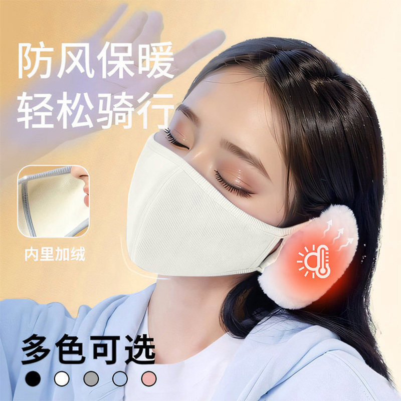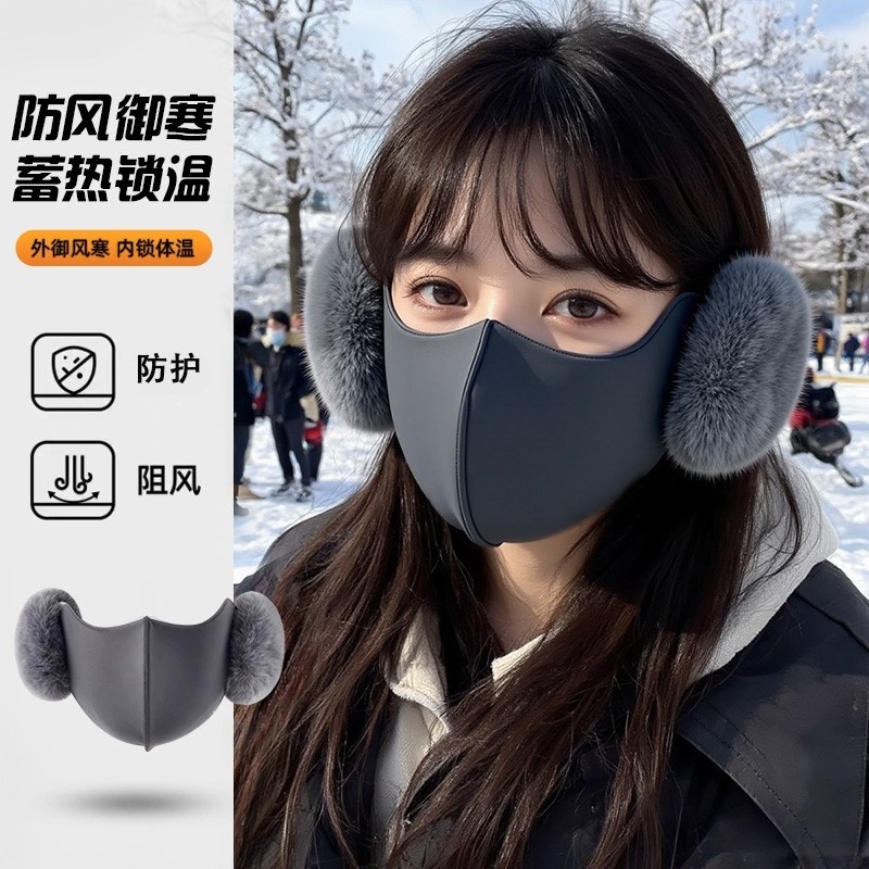 保暖耳罩口罩冬骑行防寒护耳面罩耳套女高颜值加绒抗寒灰色粉色