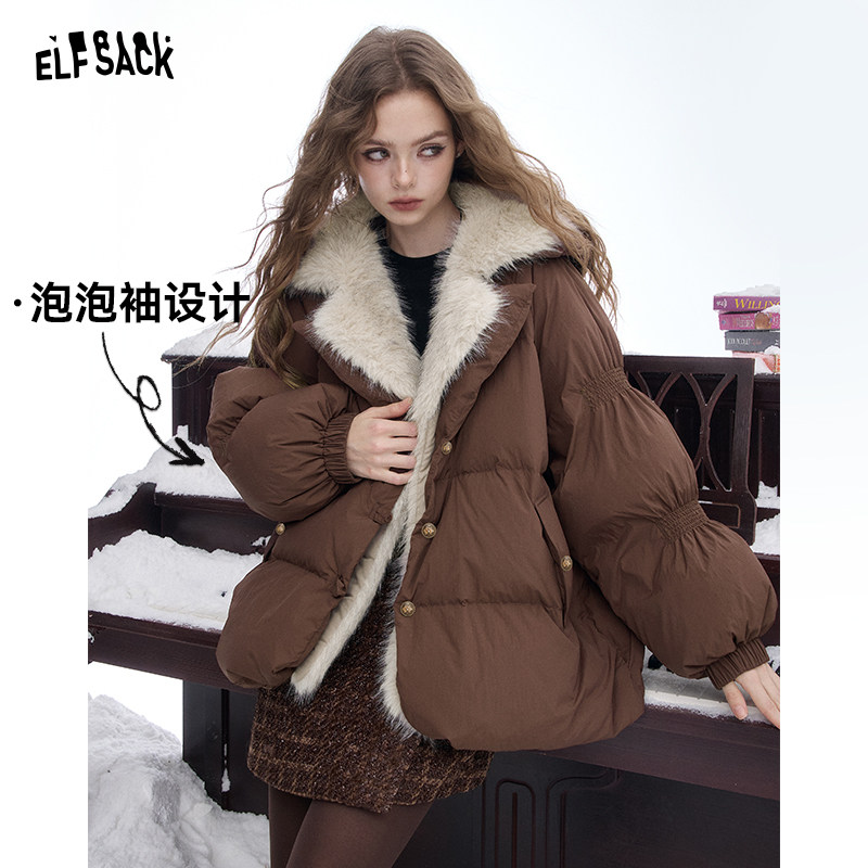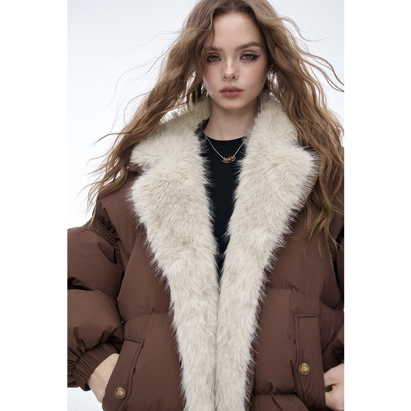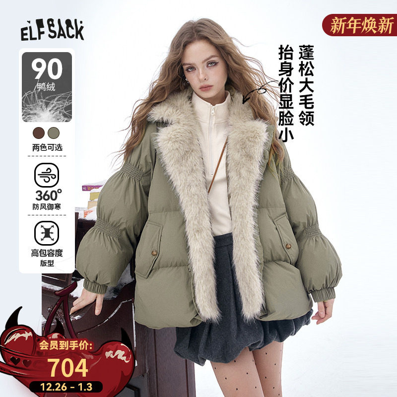 妖精的口袋复古大毛领短款羽绒服女2025冬新款新年战袍保暖厚外套