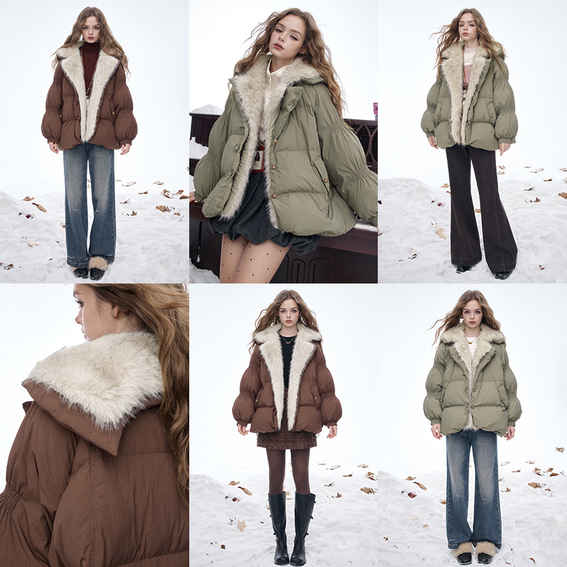 【李佳琦直播间】雪中飞2025鹅绒男女貉子毛领复古工装派克羽绒服
