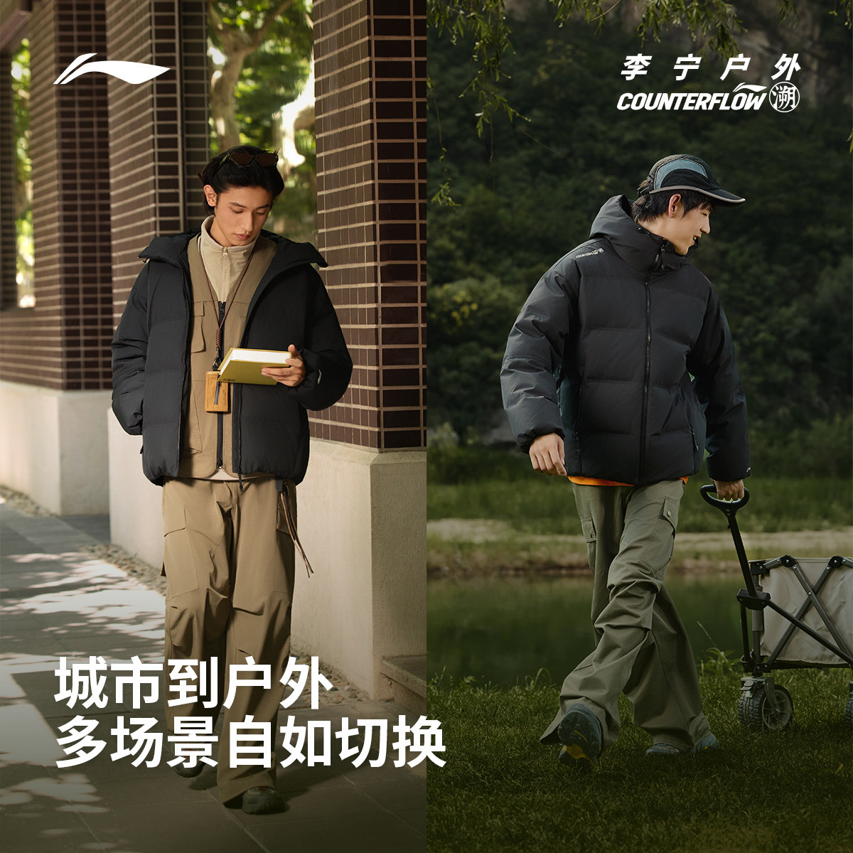 李宁户外CF溯丨短款羽绒服男士冬季鸭绒加厚保暖宽松羽绒衣女