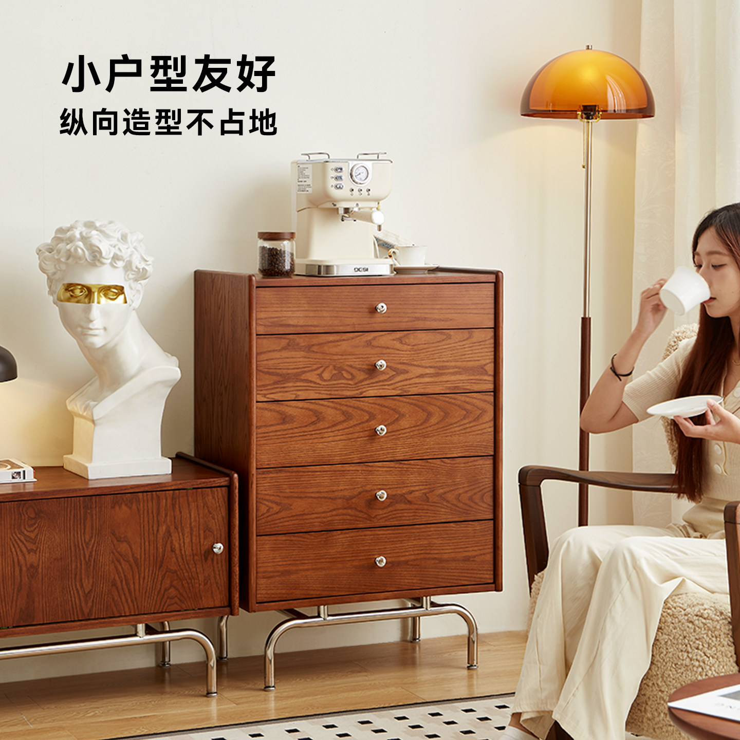 忧尚雅轩中古风实木五斗柜客厅玄关柜2026新款法式复古床边储物柜
