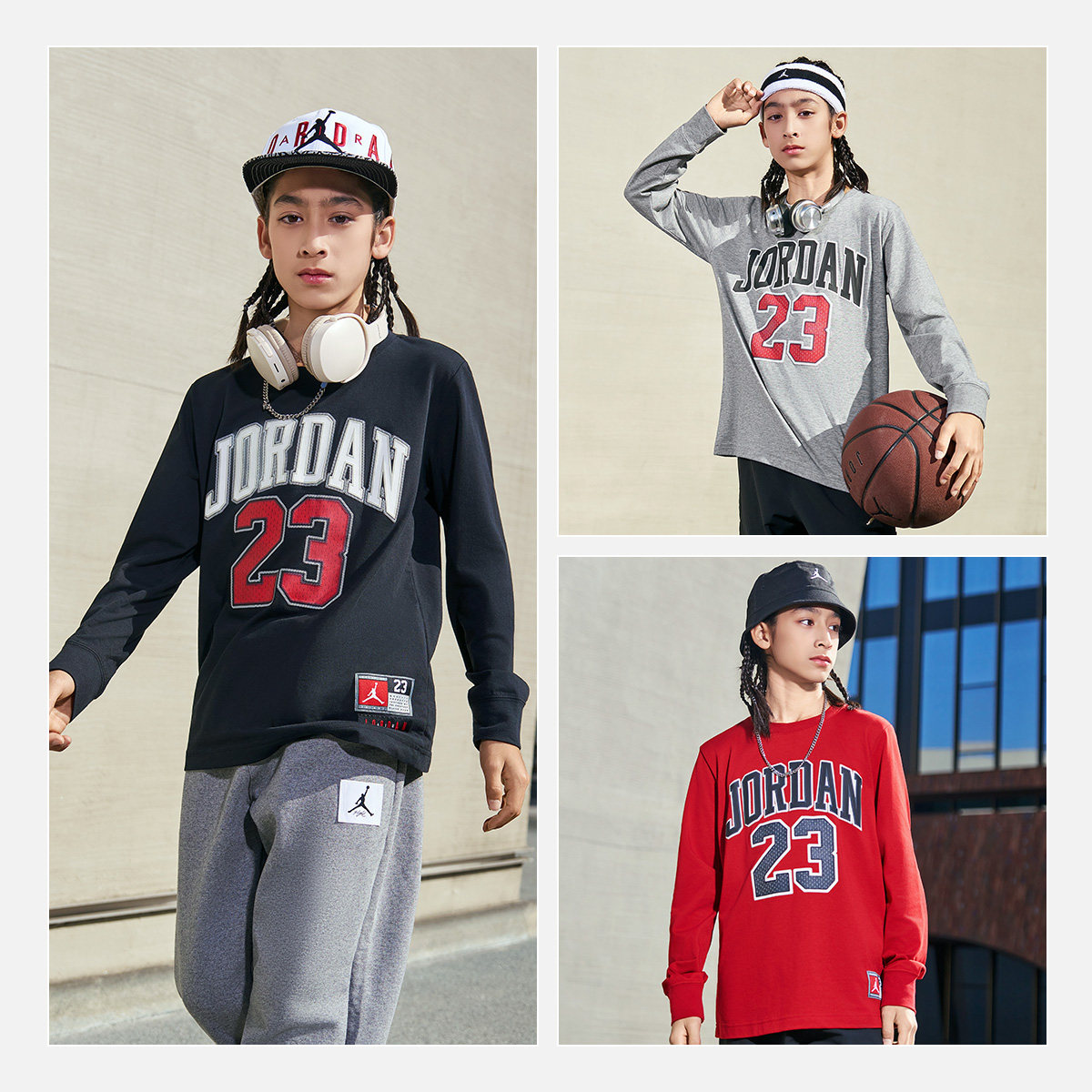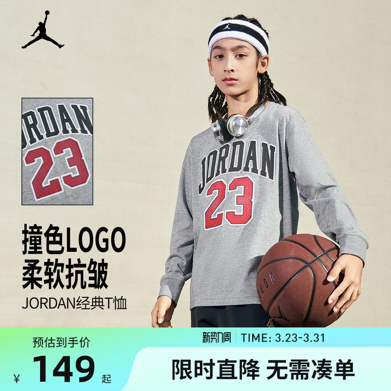 Jordan童装儿童长袖t恤2026春秋季男大童上衣运动休闲装JD2332076