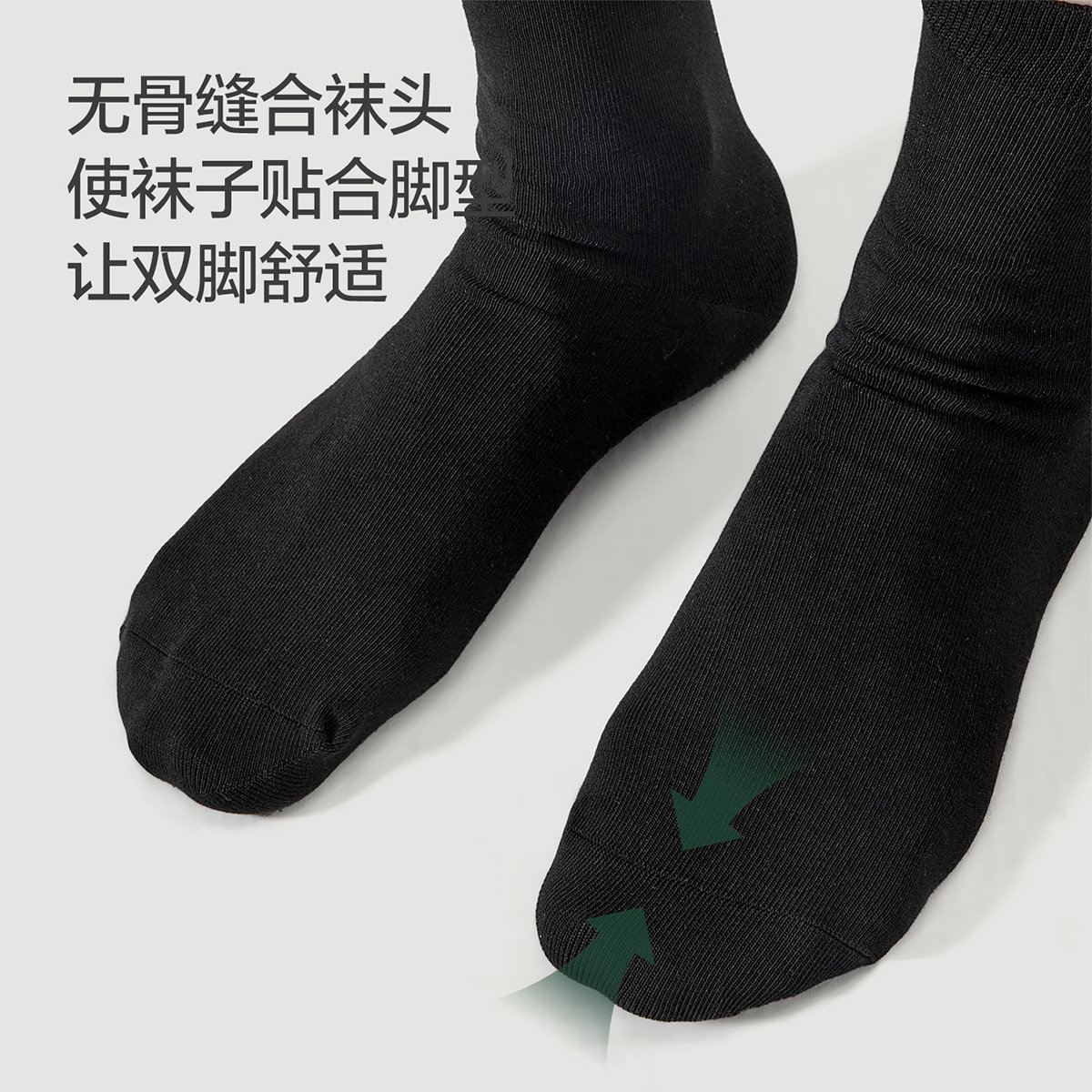 华山泉男袜子秋冬保暖子吸湿排汗长筒螺纹耐磨棉质刺绣商务黑A06C