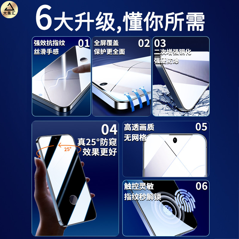 [不沾指纹]适用iPhone17/16钢化膜苹果15/14手机13promax防窥12全屏XR/xsmax全包11贴X防摔8por高清plus