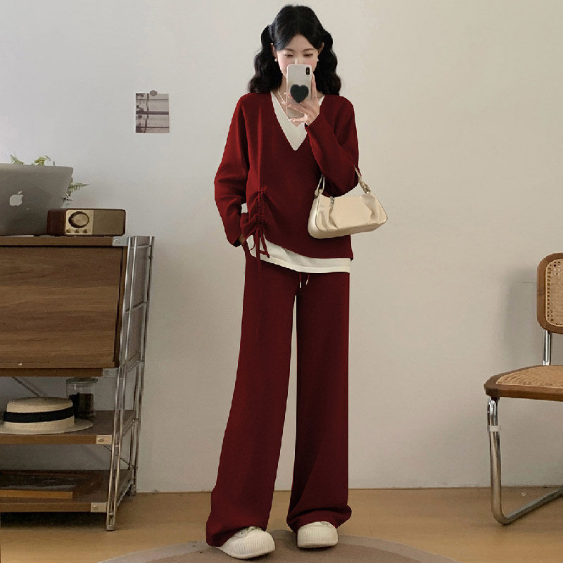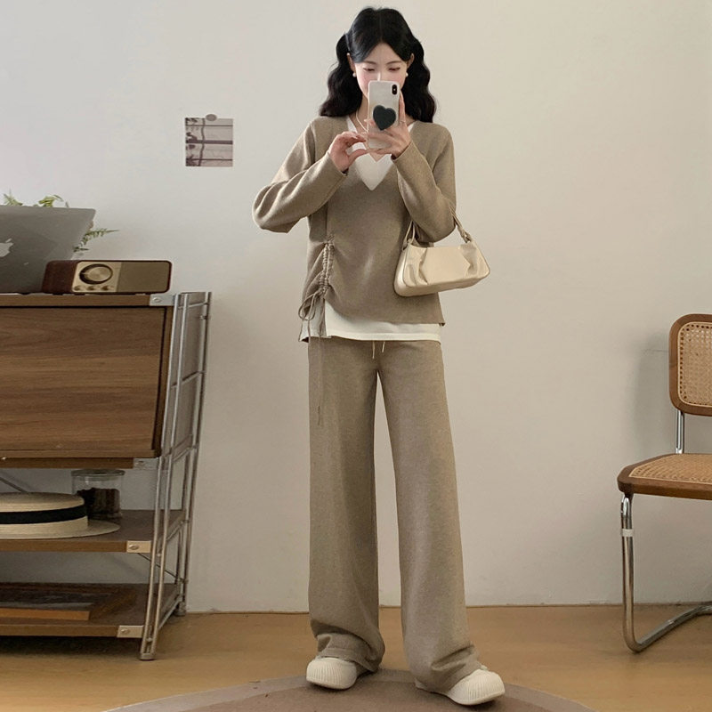 婧麒孕妇装冬装时尚假两件收腰上衣宽松裤子孕期新款洋气孕妇套装