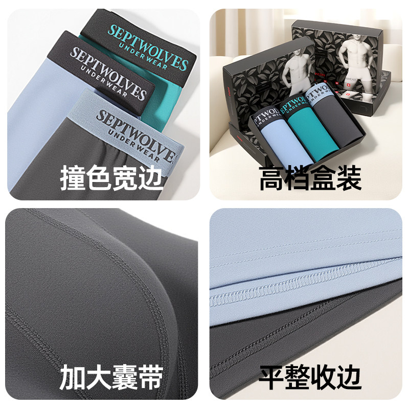 安比斯男士冰丝内裤四角裤抗菌裆男生平角短裤头男式透气夏季