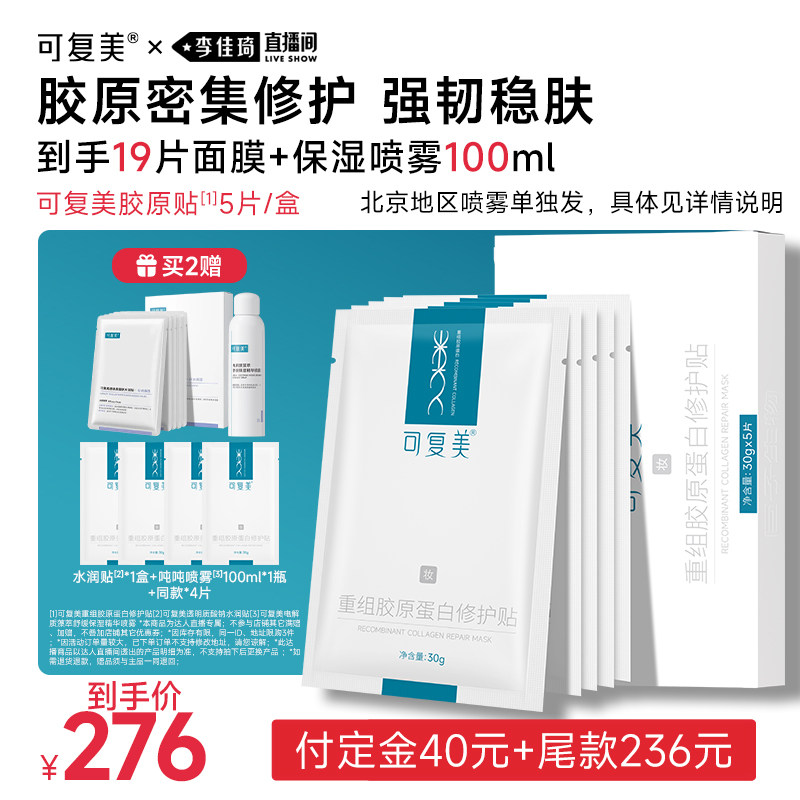 【李佳琦美妆节付定金】【妆】可复美胶原贴重组胶原修护贴面膜